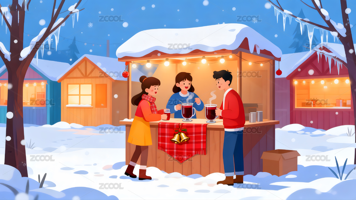 冬季传统节气风景一家人围坐在温暖的火炉旁