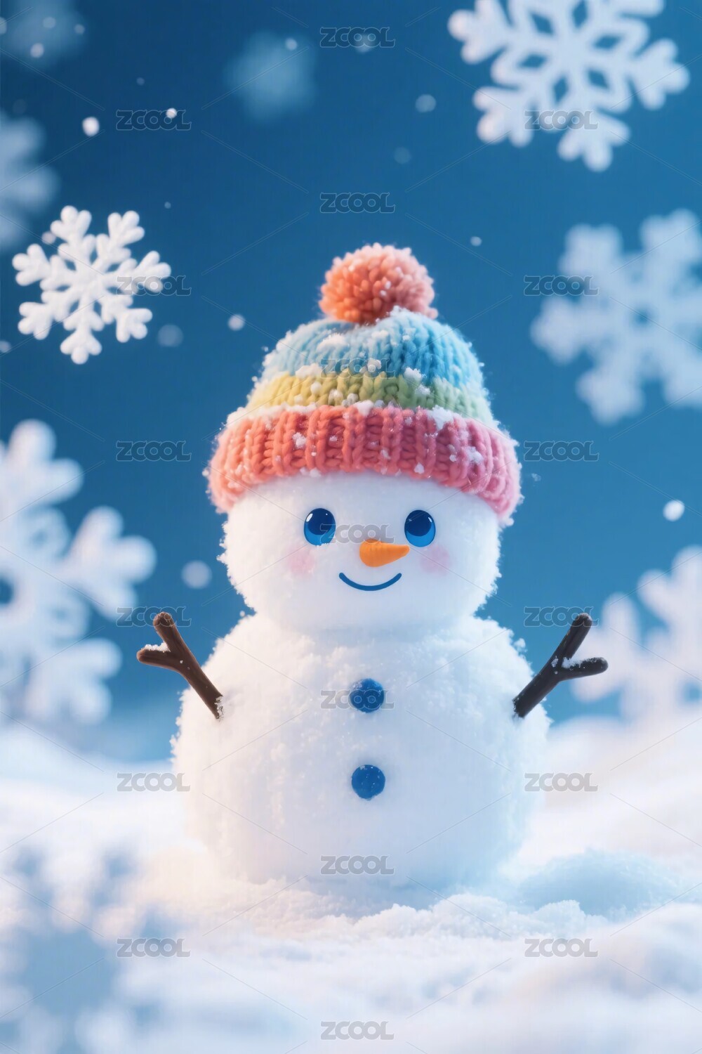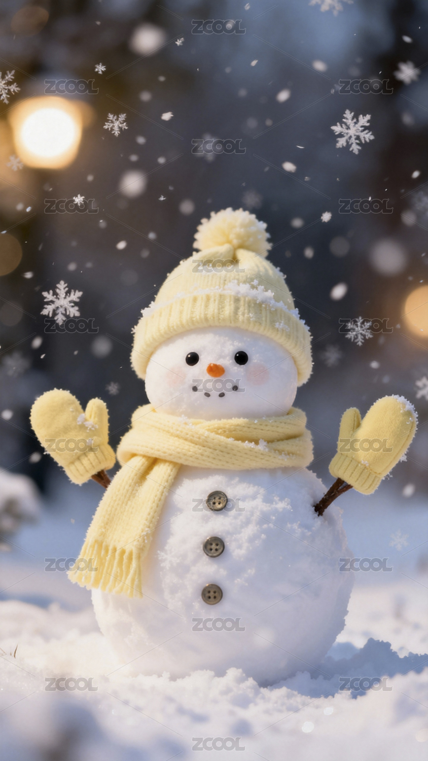 下雪的圣诞节室外可爱圣诞装扮雪人