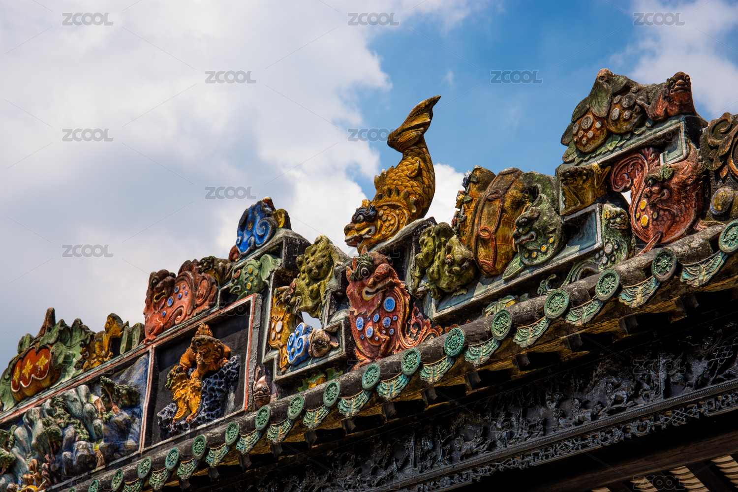 中国广州陈家祠岭南建筑屋顶灰塑陶塑