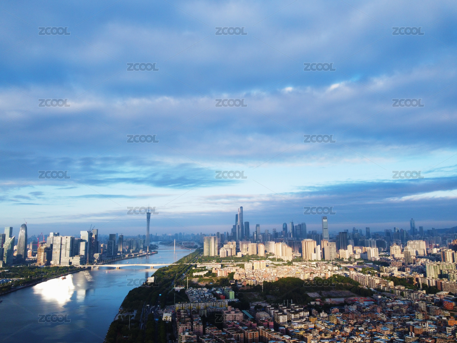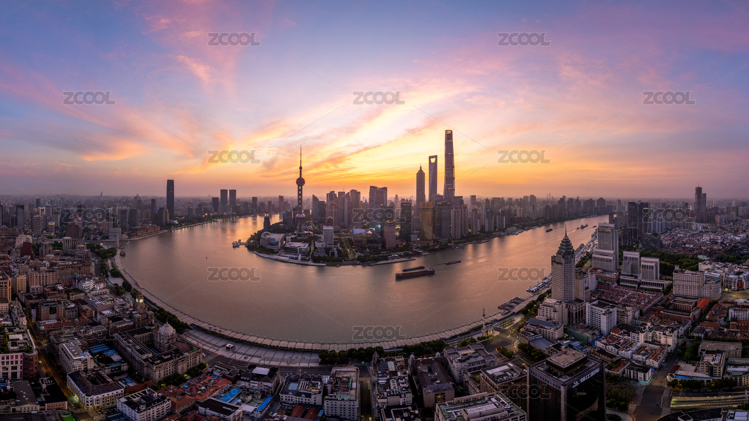航拍上海地标建筑陆家嘴城市天际线全景风光