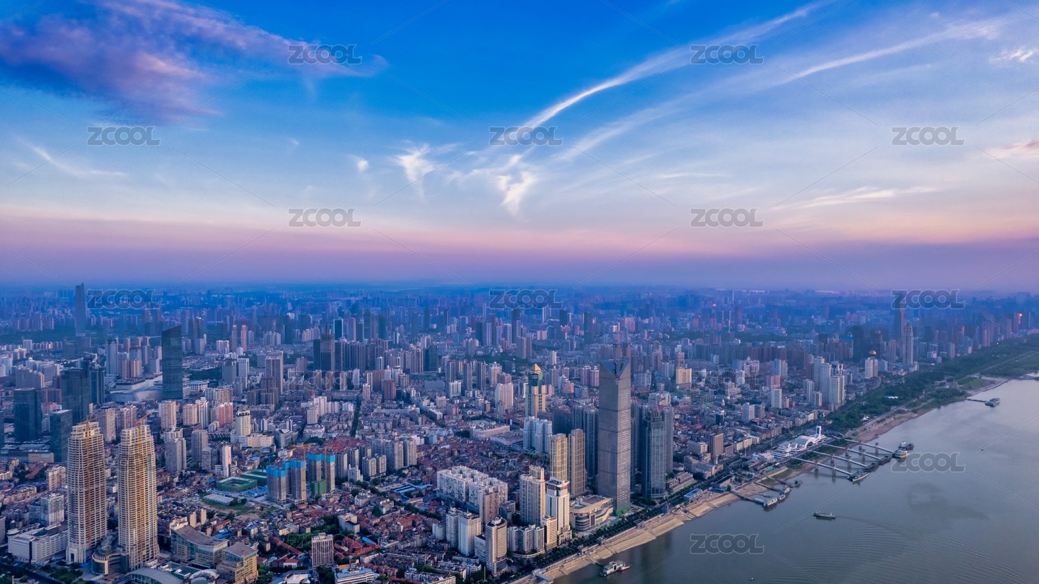 傍晚世博板块视角遥望中国上海浦东陆家嘴