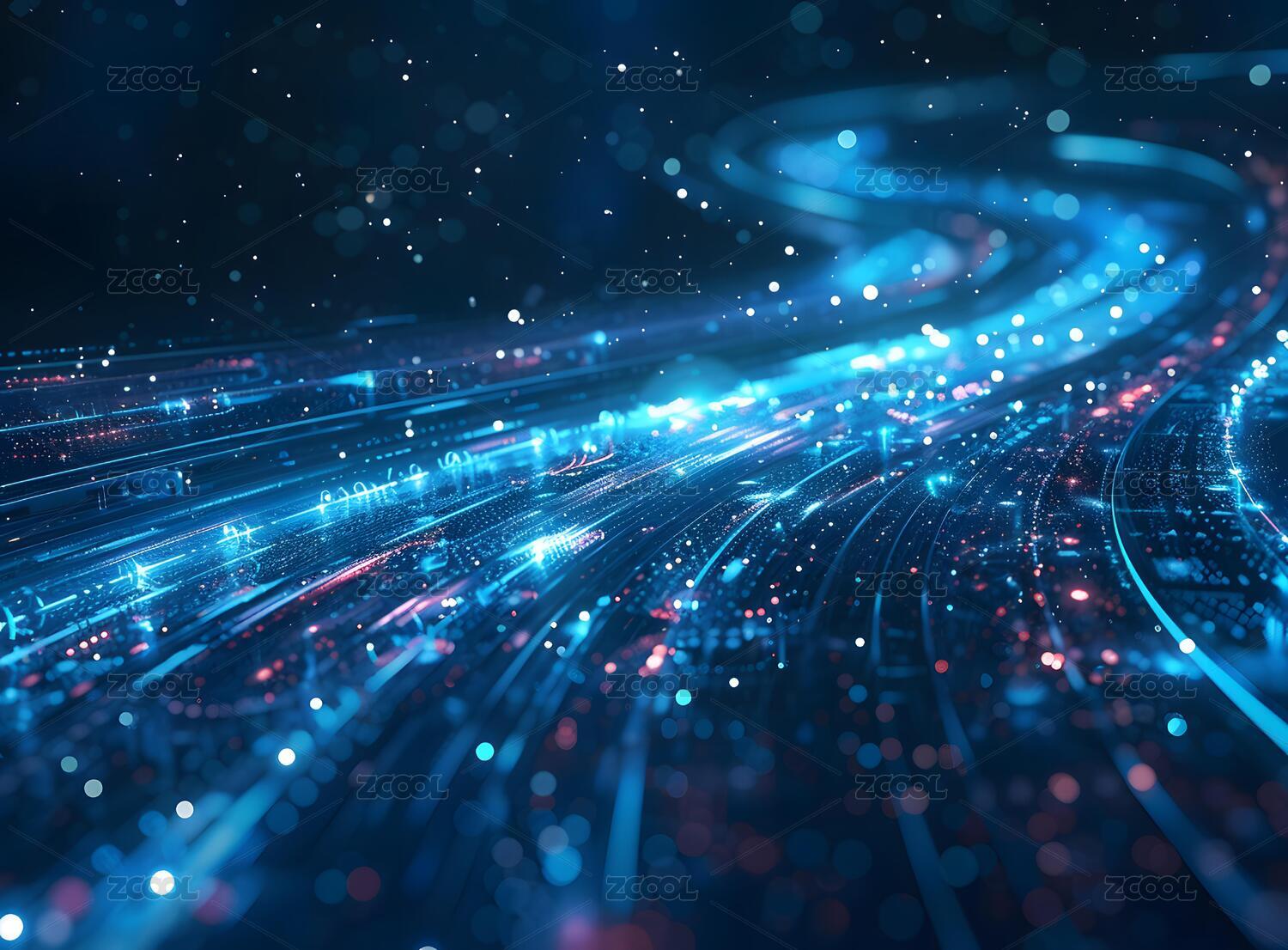 蓝色能量粒子隧道模糊散景发光明亮抽象背景