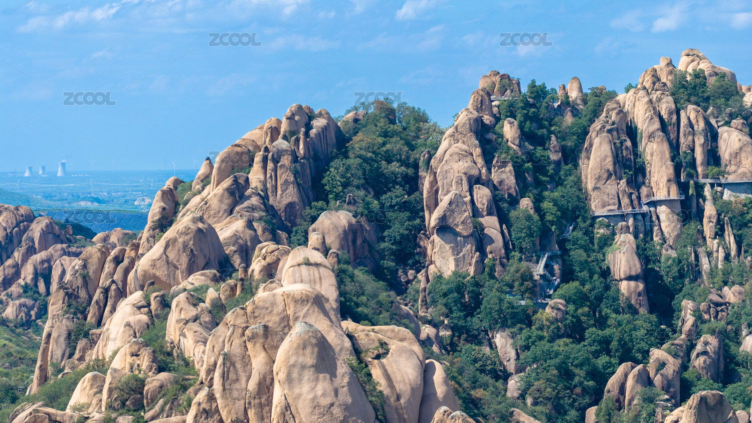 蓝天白云下河南驻马店花岗岩地貌嵖岈山景观