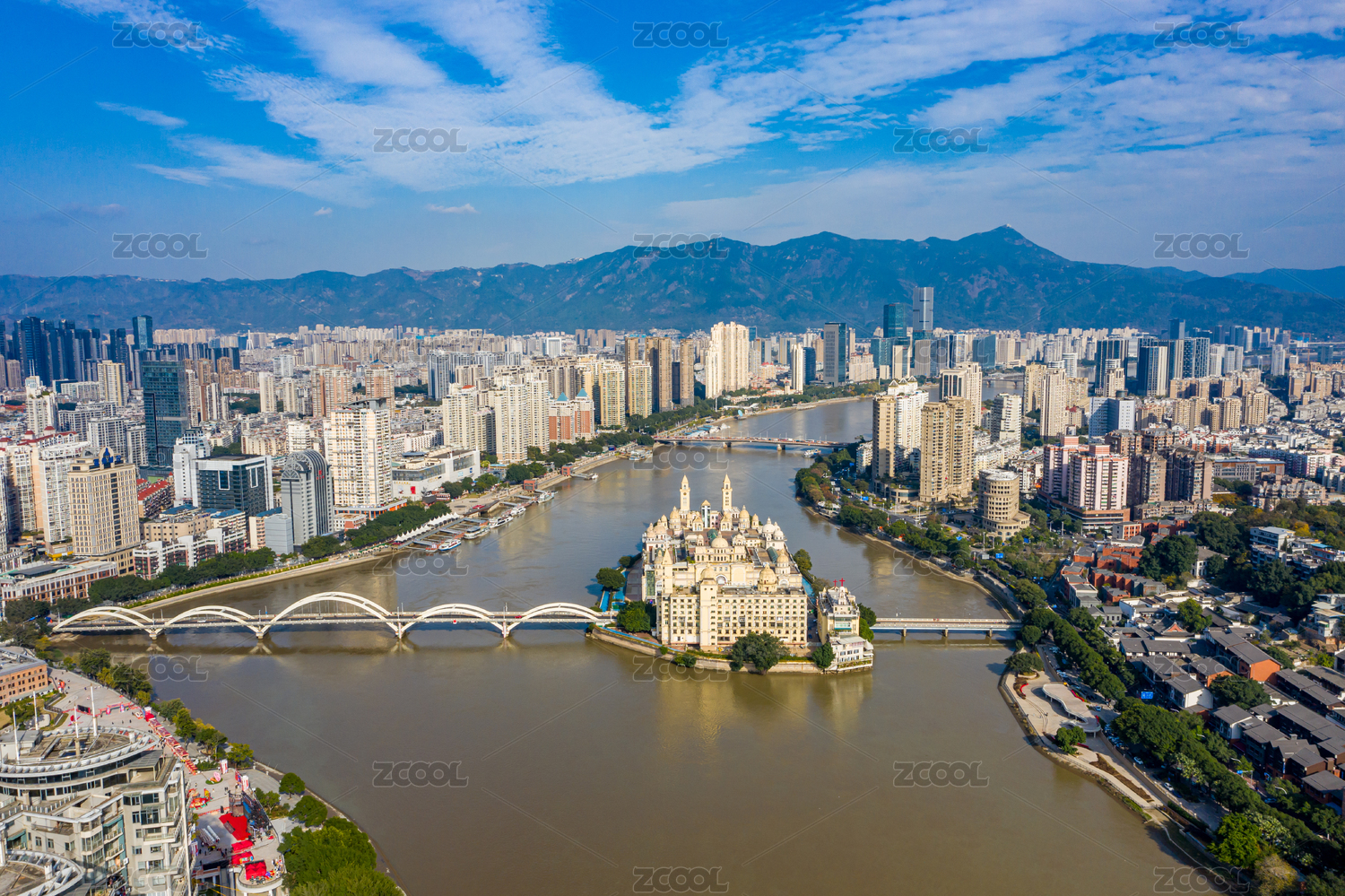 福州城市航拍闽江