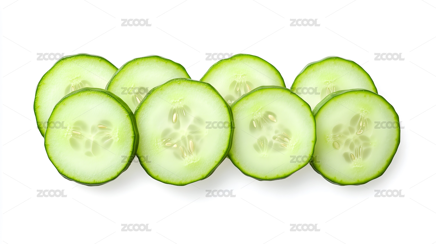 白背景黄瓜切片特写,夏日清凉护肤主题。