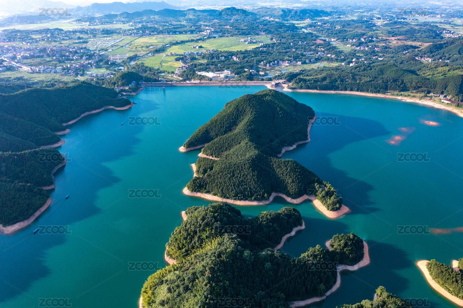 四川眉山市黑龙潭水库黑龙潭景区白昼航拍