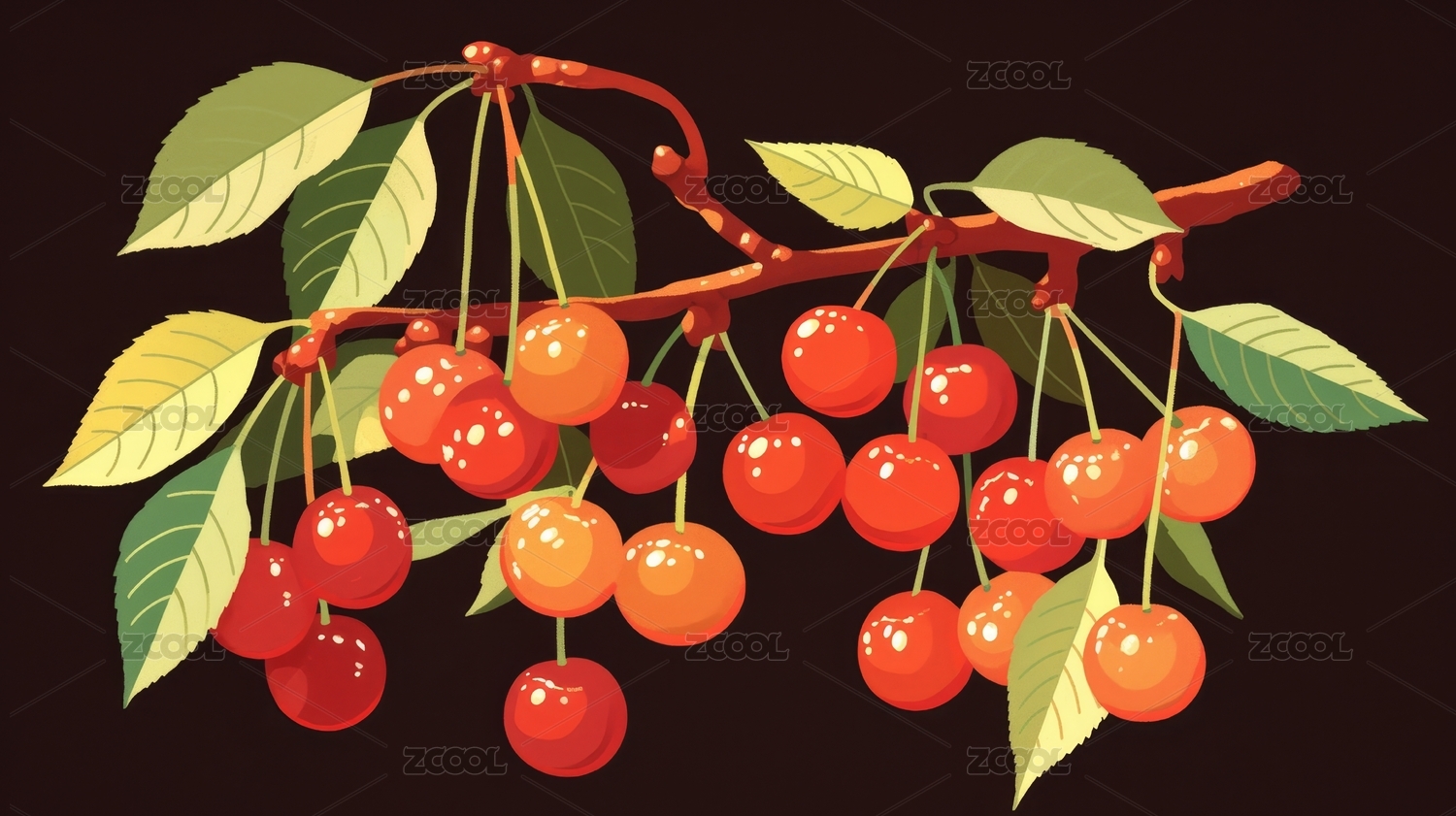 插画,绘画,古风,国风,中国风,中式,古典,典雅,红果,枝条