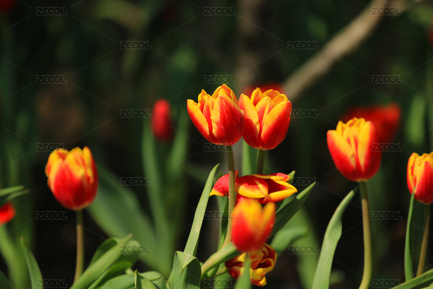 公园盛开的郁金香花