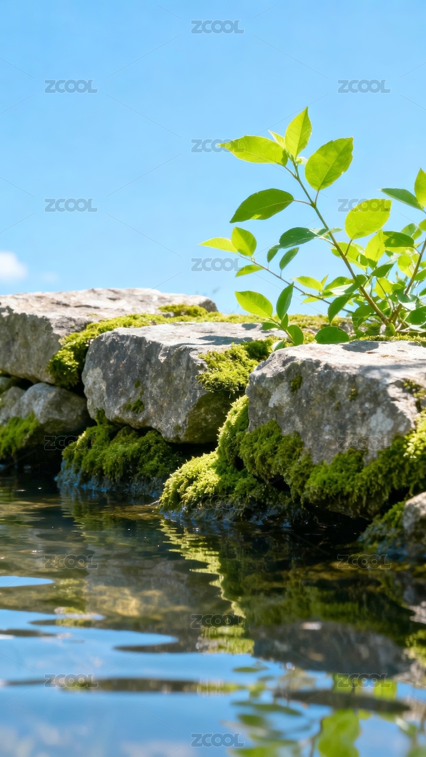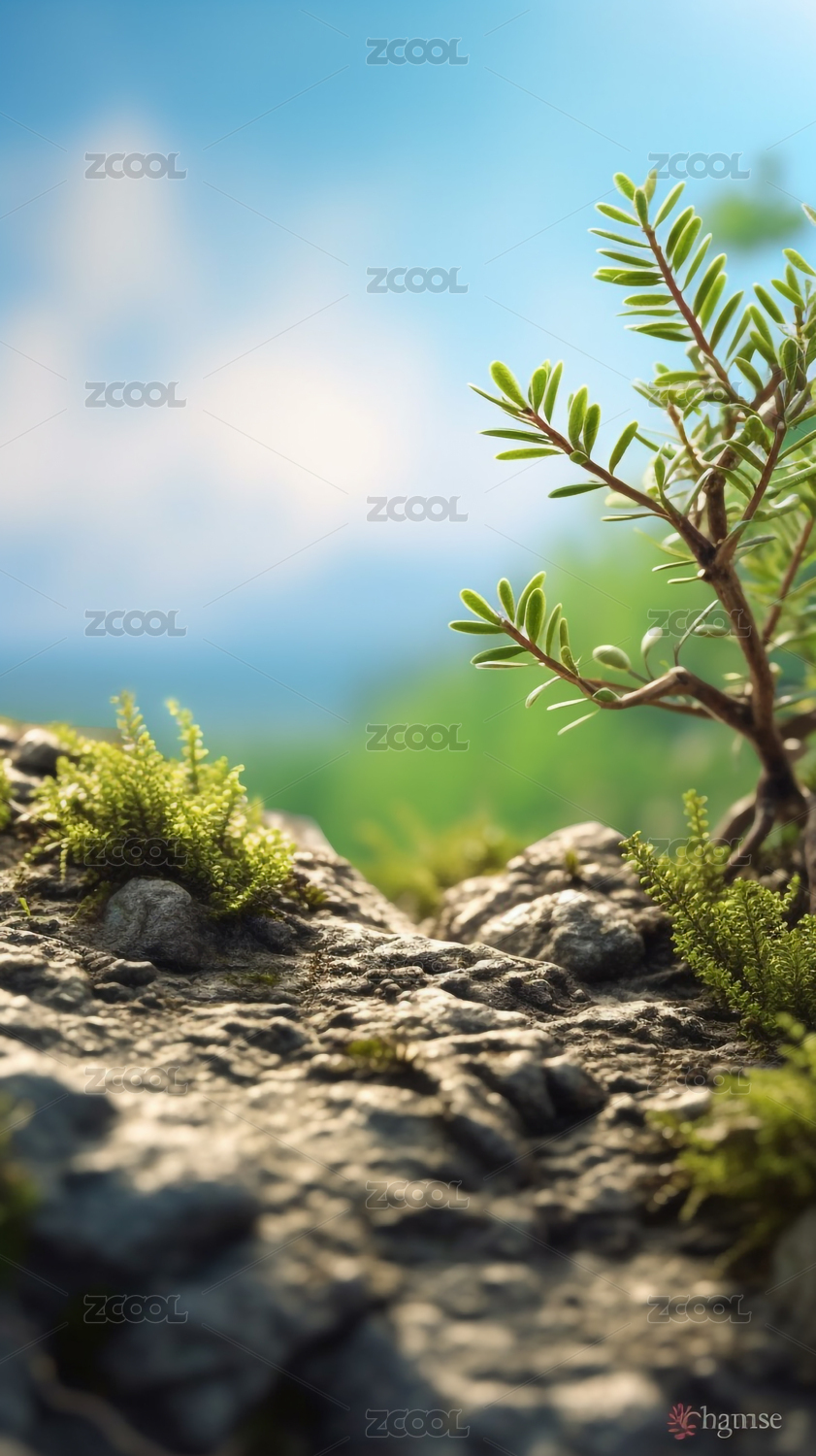绿植,生命,山顶,山,仰视,环境,天空,蓝天,夏天,植物