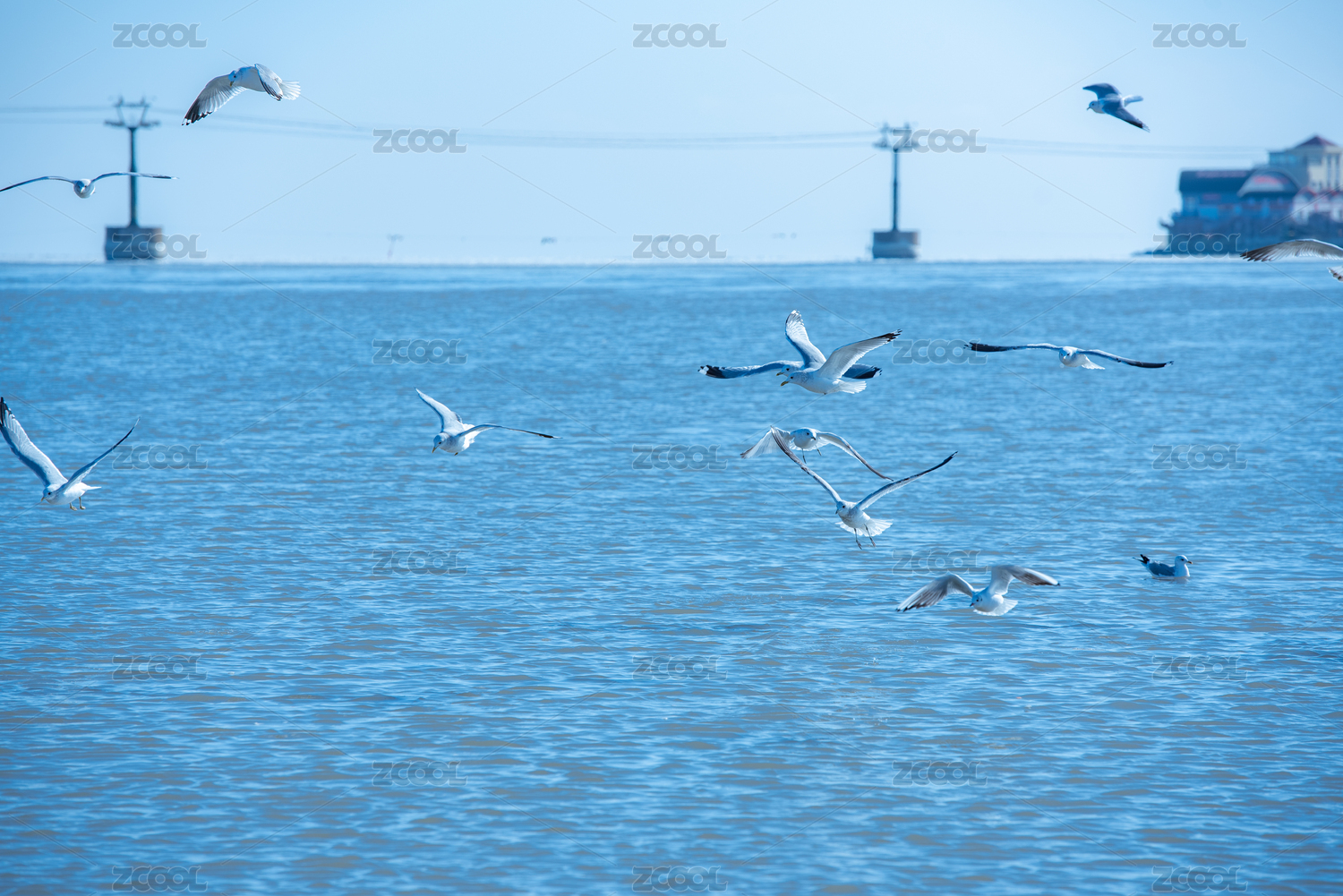 中国河北秦皇岛北戴河湿地飞翔的鸟群