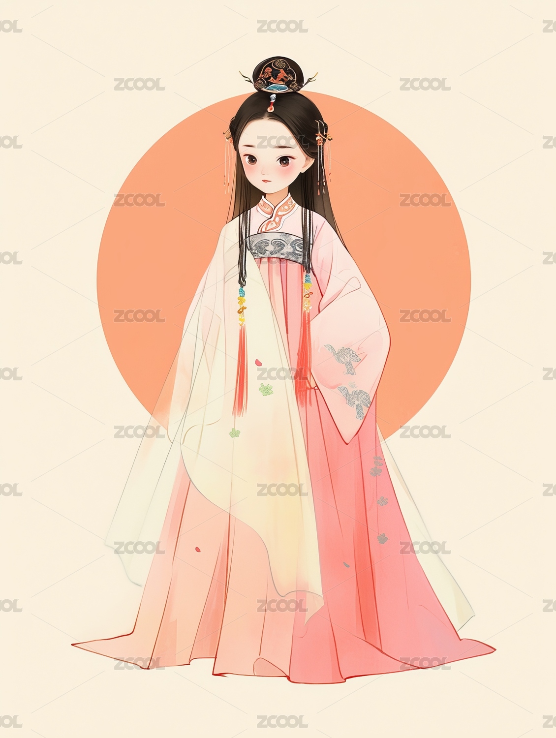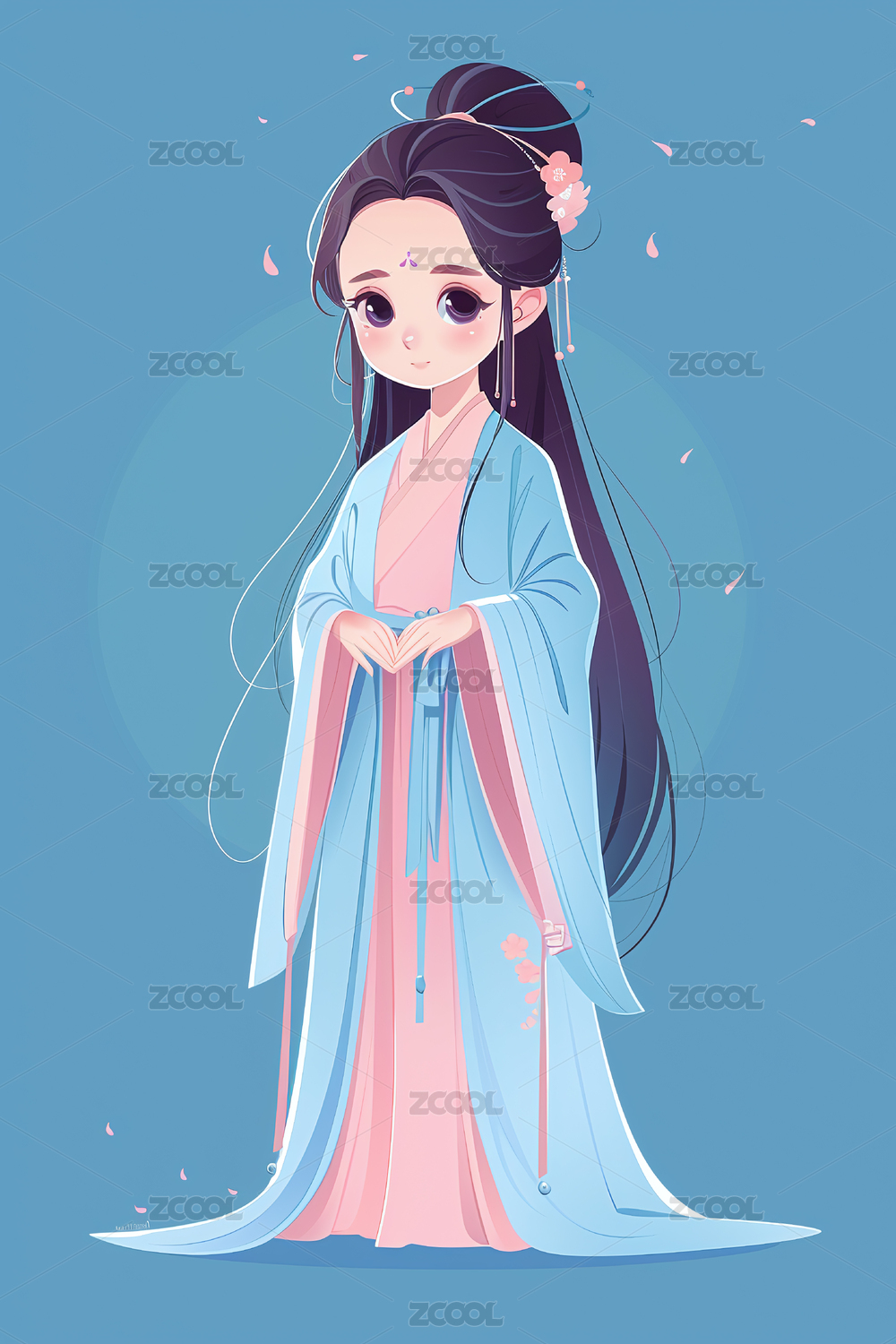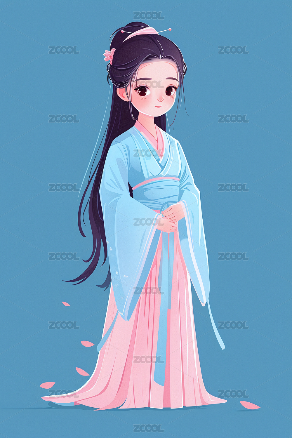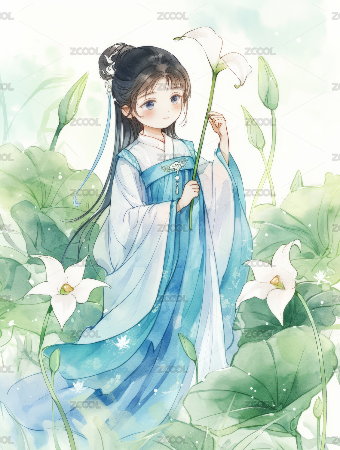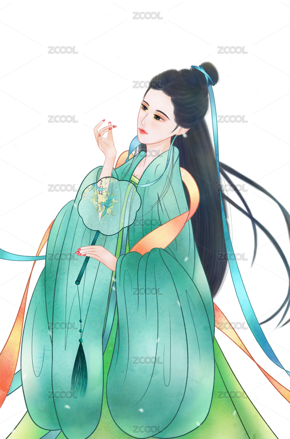 古风拿扇自赏的清丽淡雅汉服女孩唯美白底图