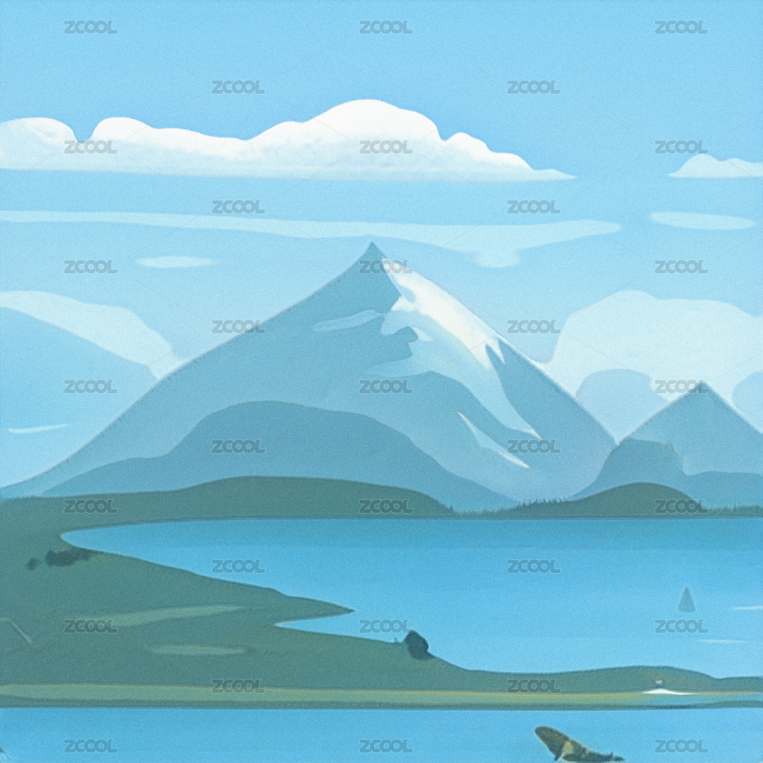 插画,风光,自然,写实,天空,山脉,河流,河,大海,海洋