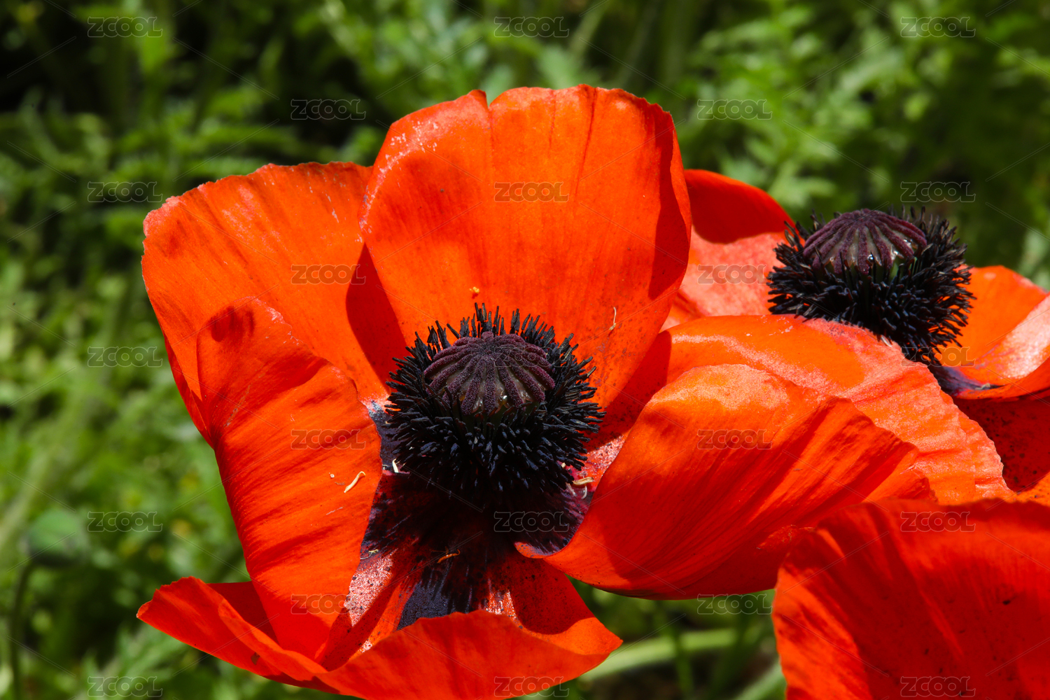 盛开,花朵,虞美人,红色,白昼,晴天,户外,无人,自然,植物