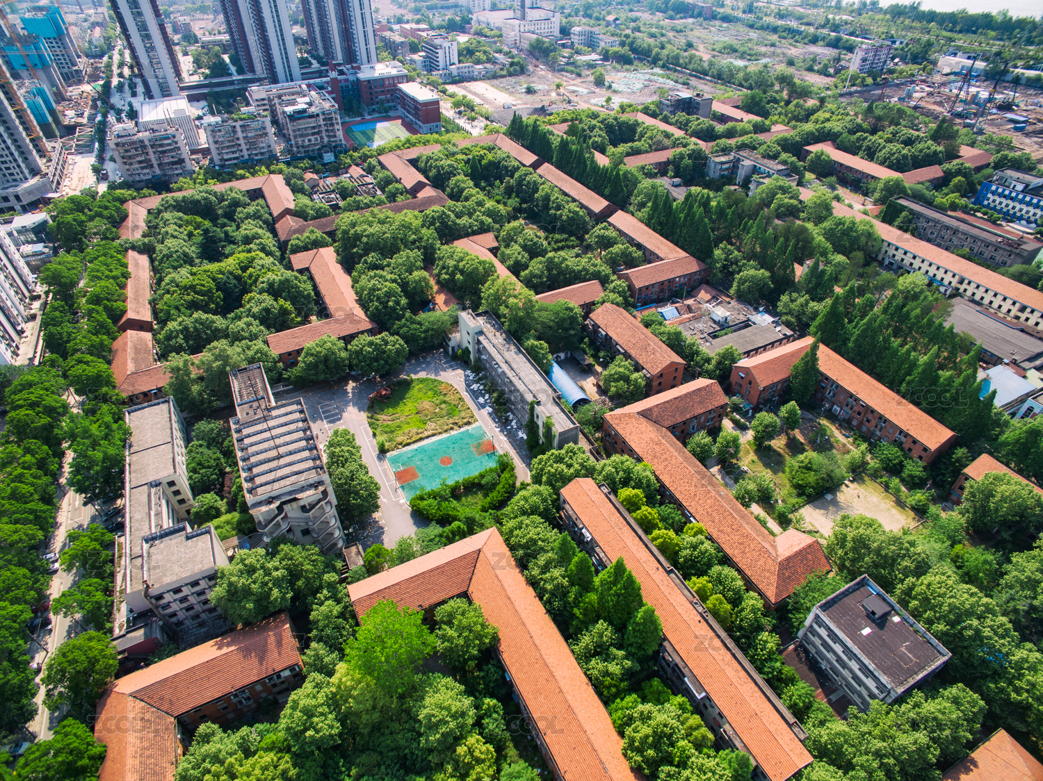 红色,航拍视角,青山,武汉,无人,户外,自然,白昼,植物,城市
