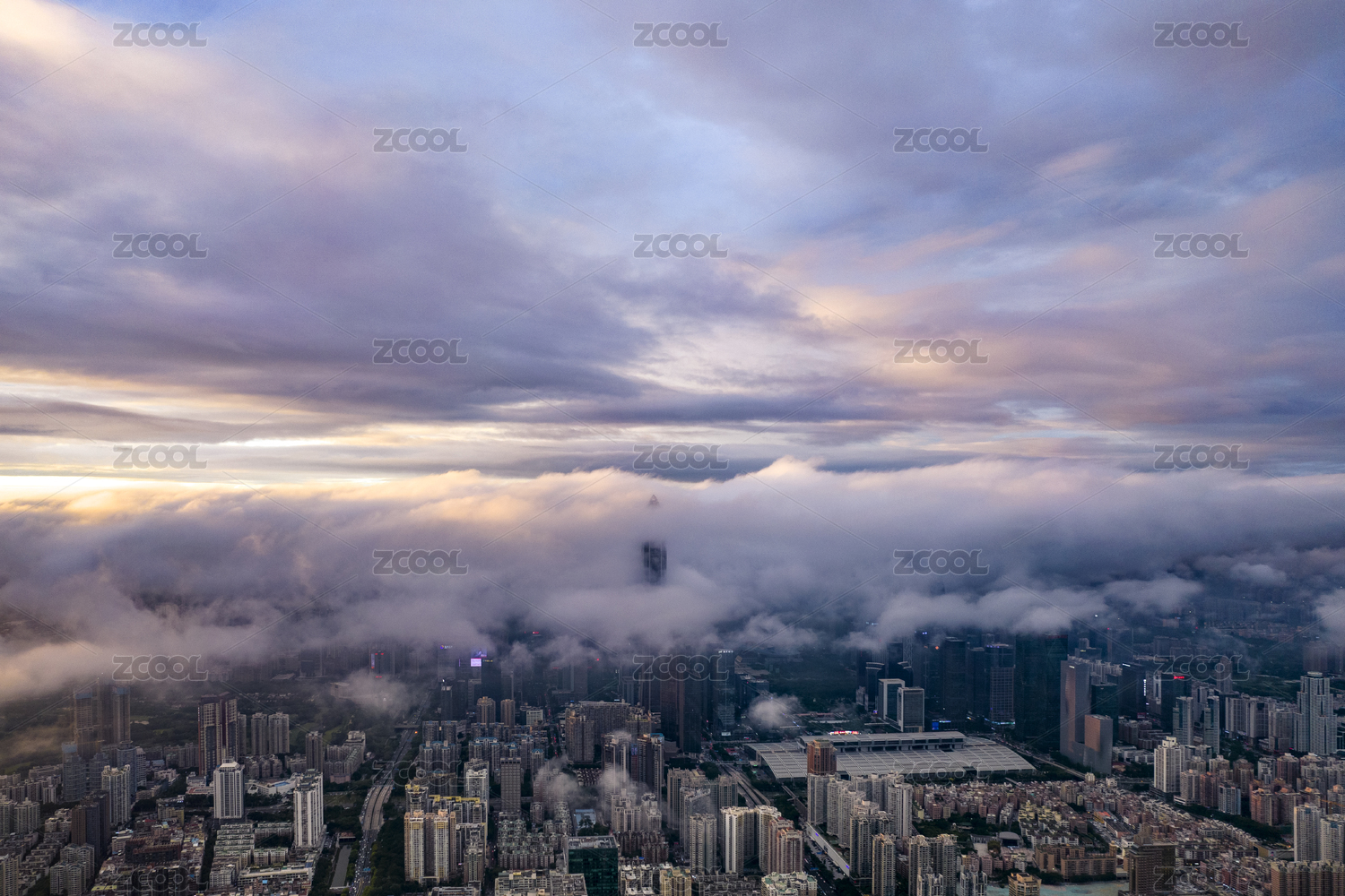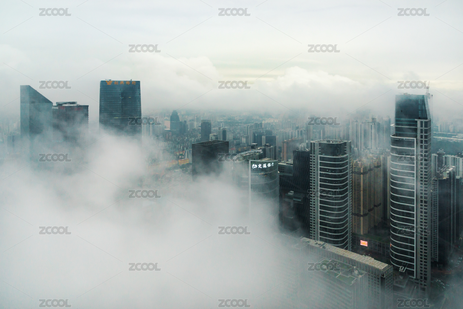 ,城市被云雾环绕仿佛置身于仙境之中