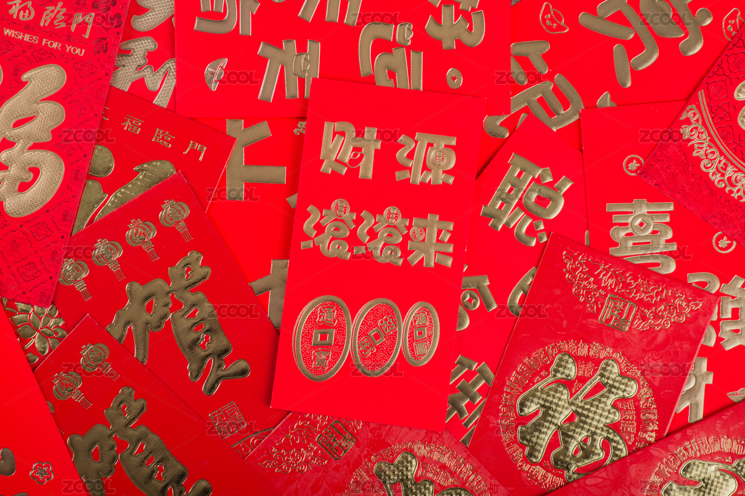 中国新年红包堆叠背景