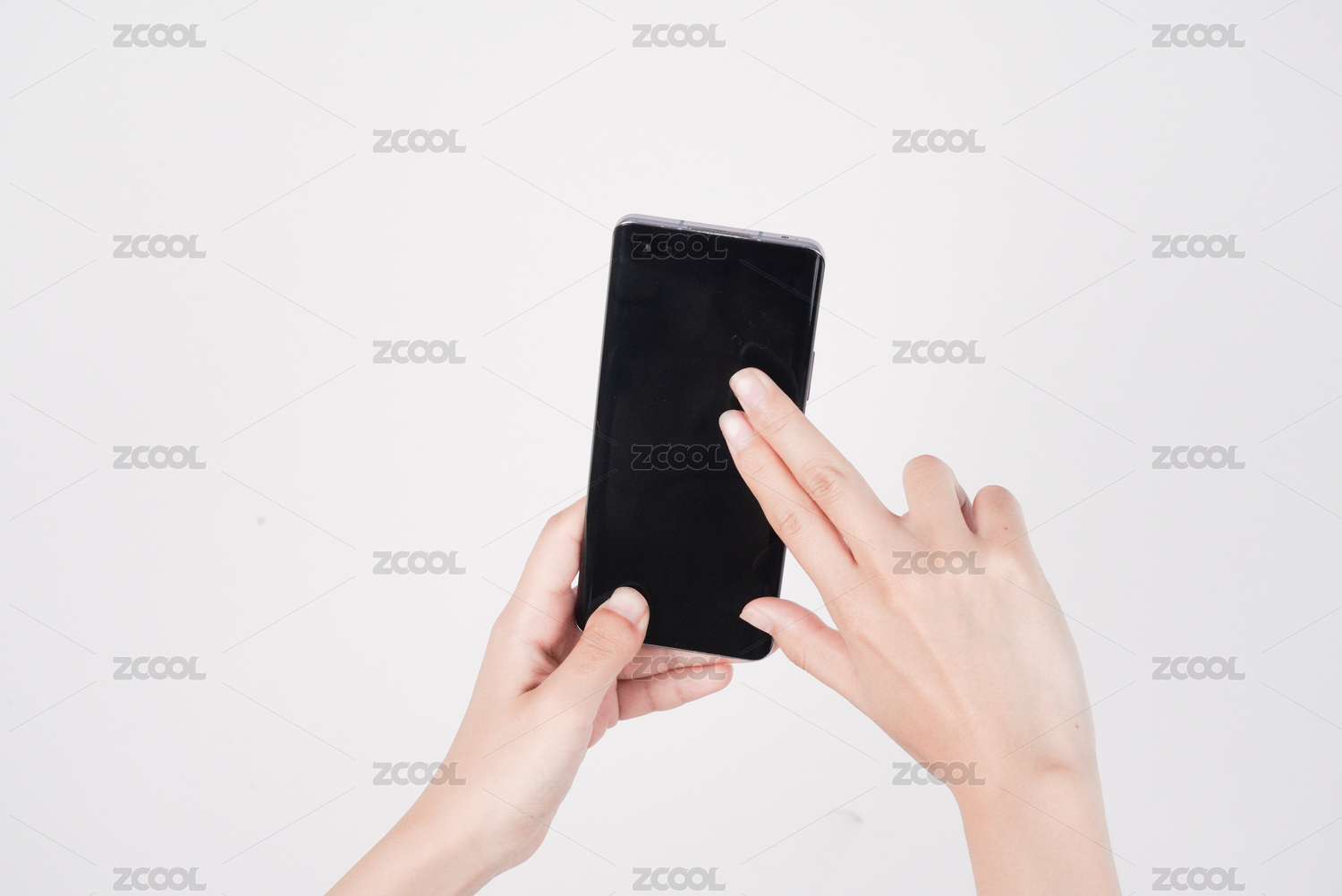 特写用手操作空白的手机界面