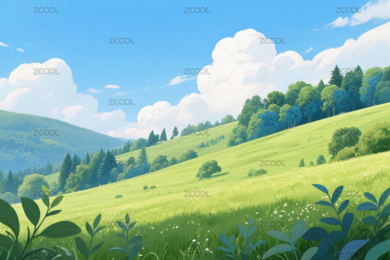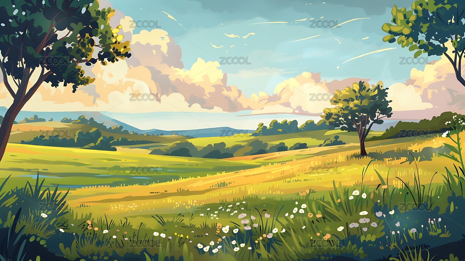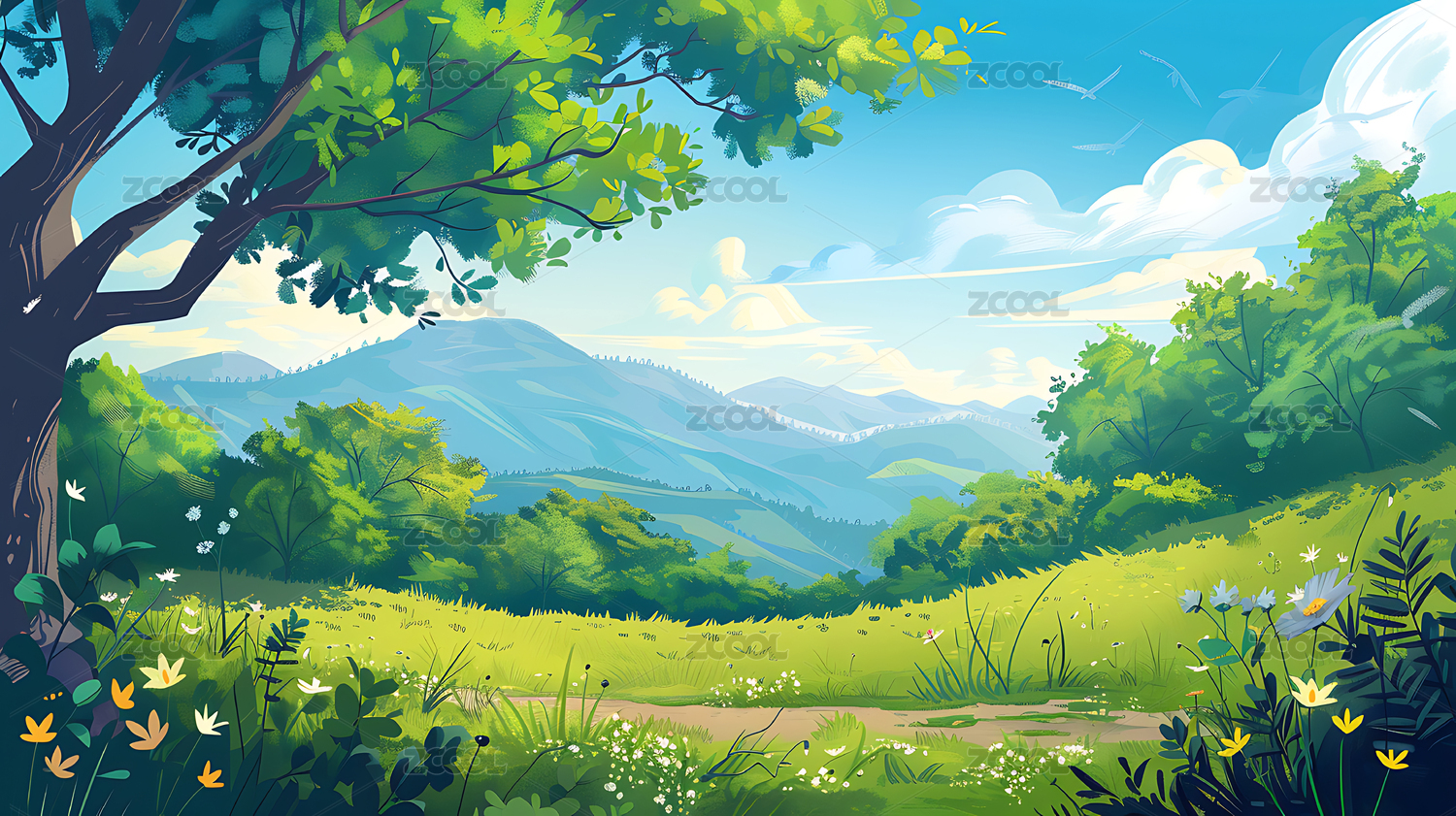 青山绿野风景插画