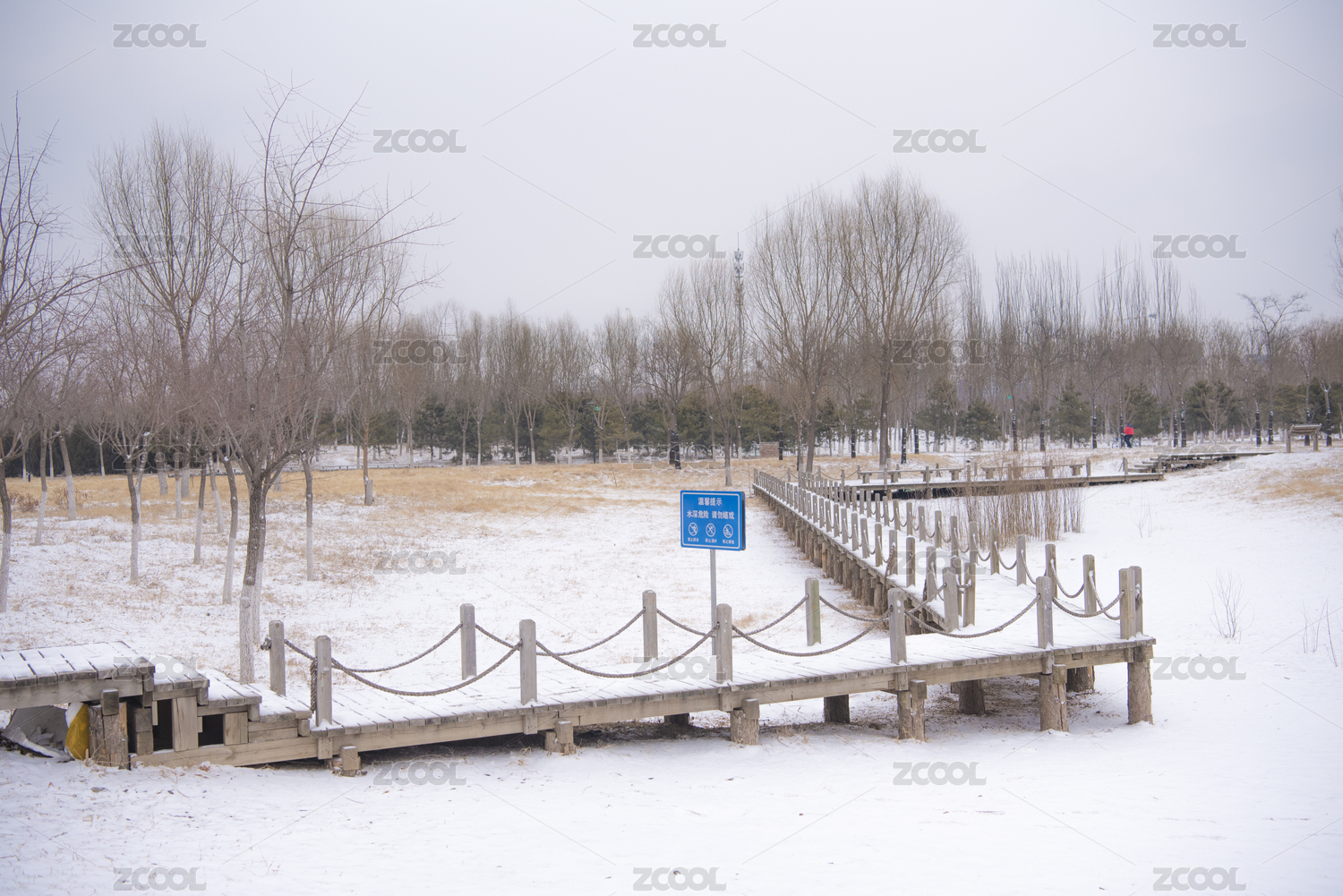 白雪覆盖的蓝玉项链生态公园观景栈道
