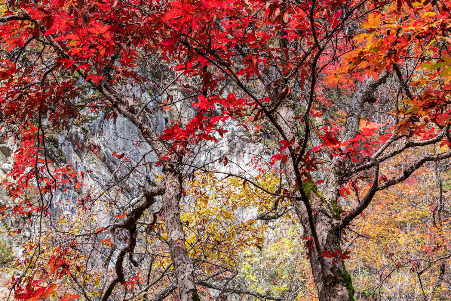 丹东,山涧,山谷,枫叶,枫树,树林,森林,森林公园,火红,秋天