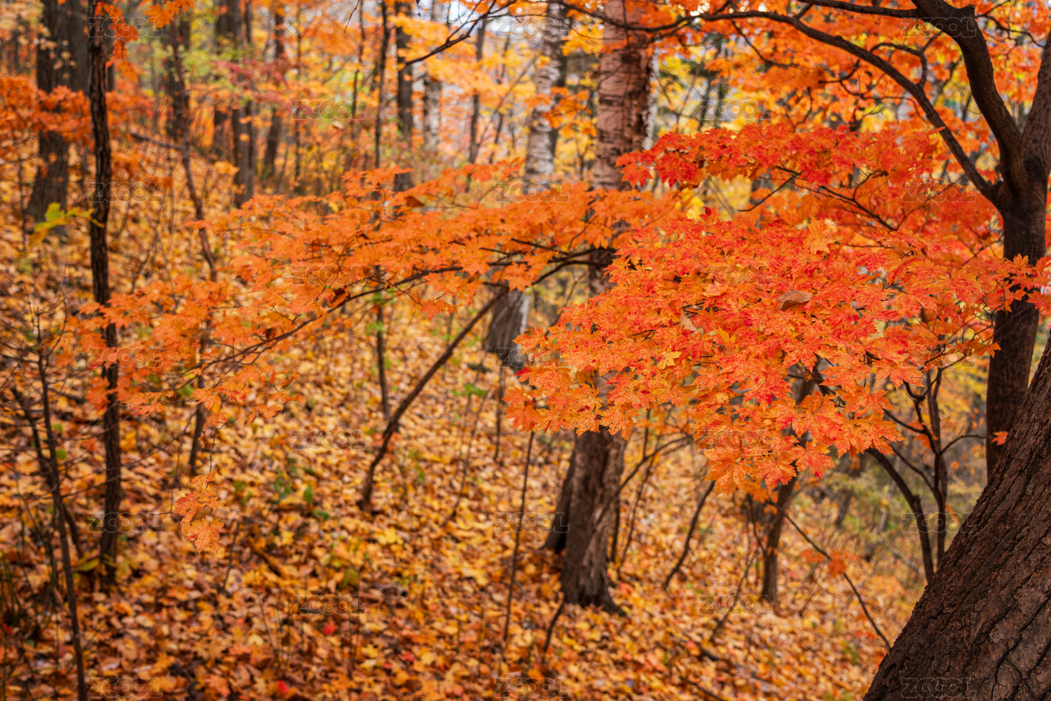 秋日森林枫树红叶