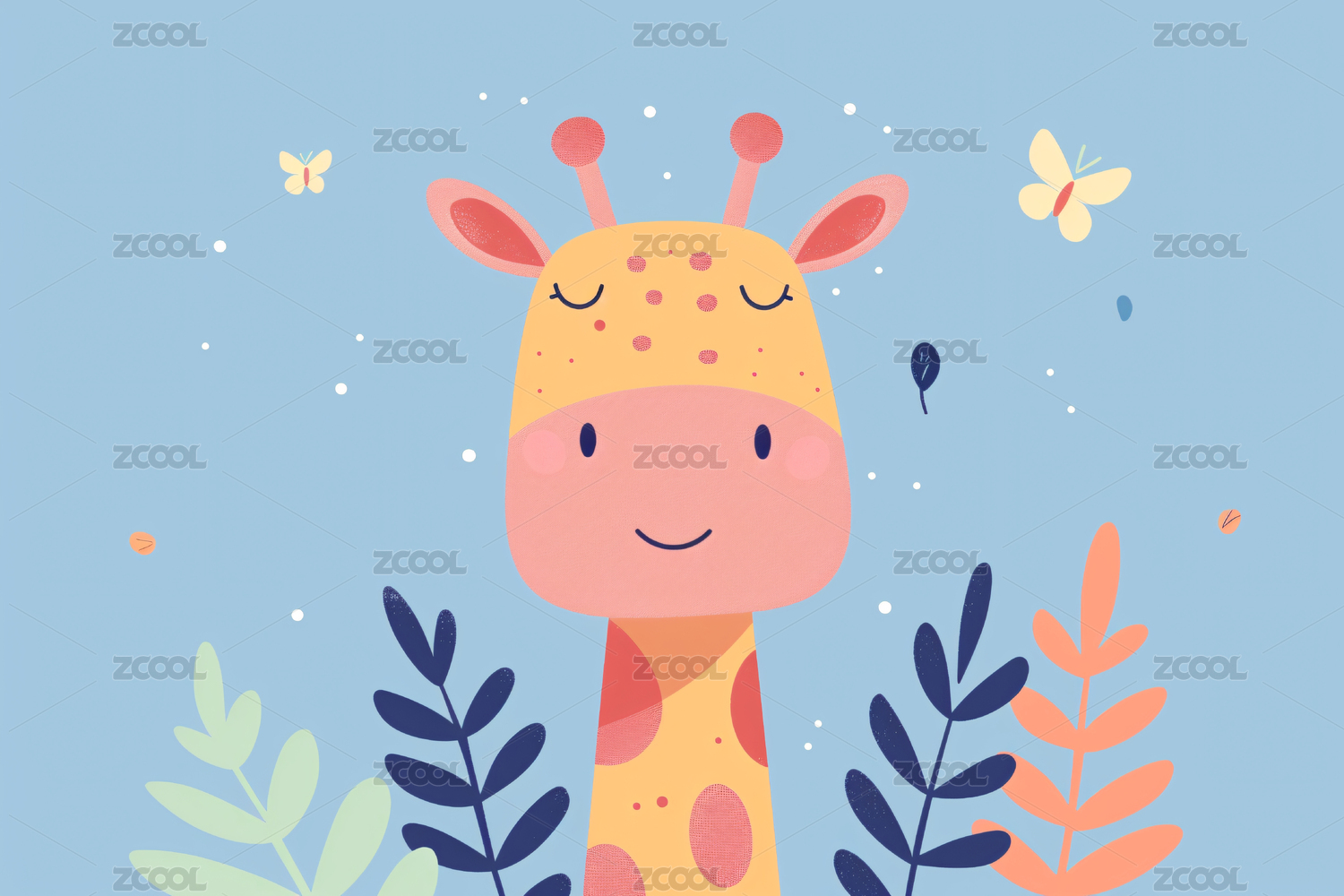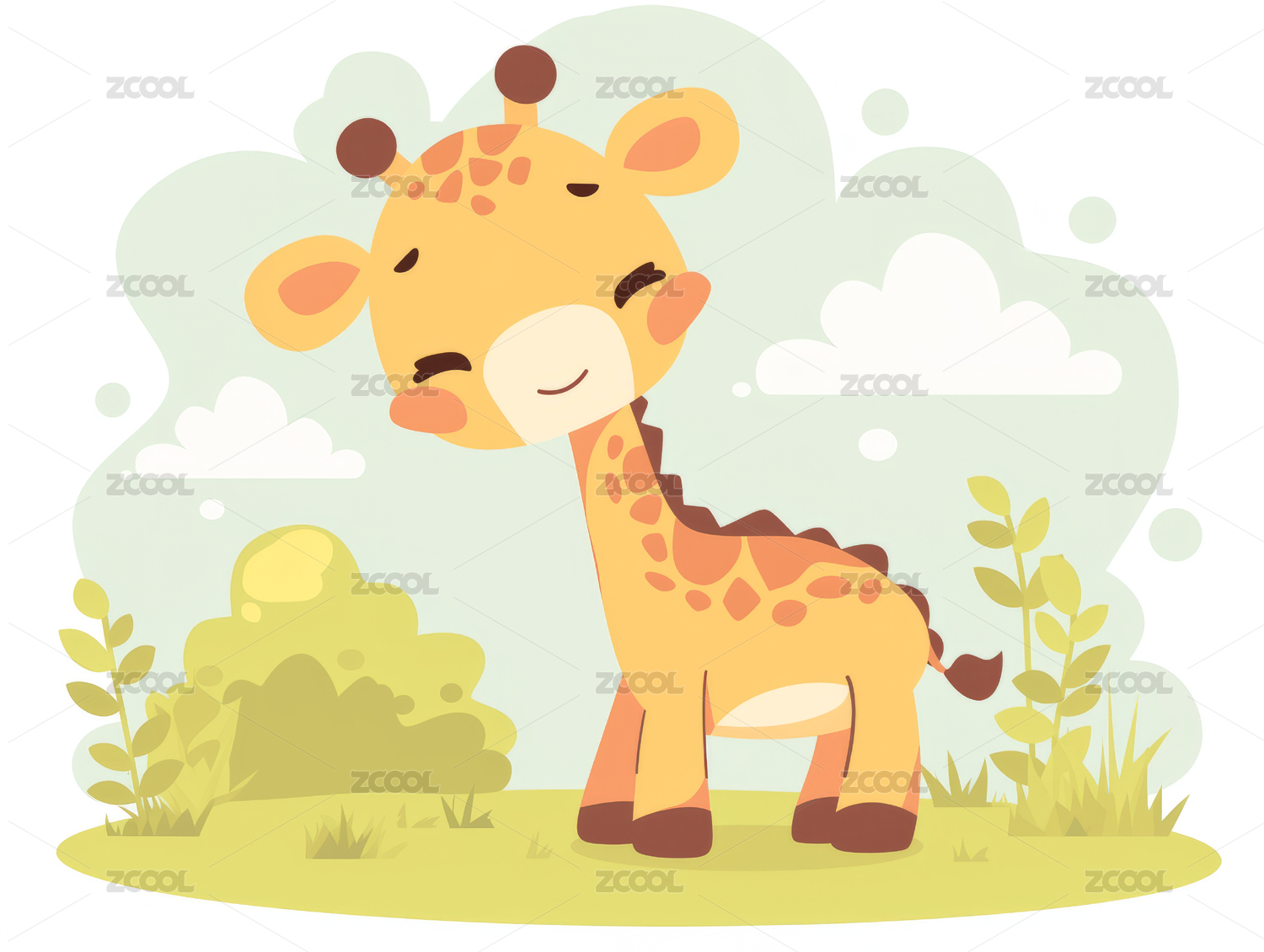 长颈鹿,卡通动物,插画,动物,手绘,卡通