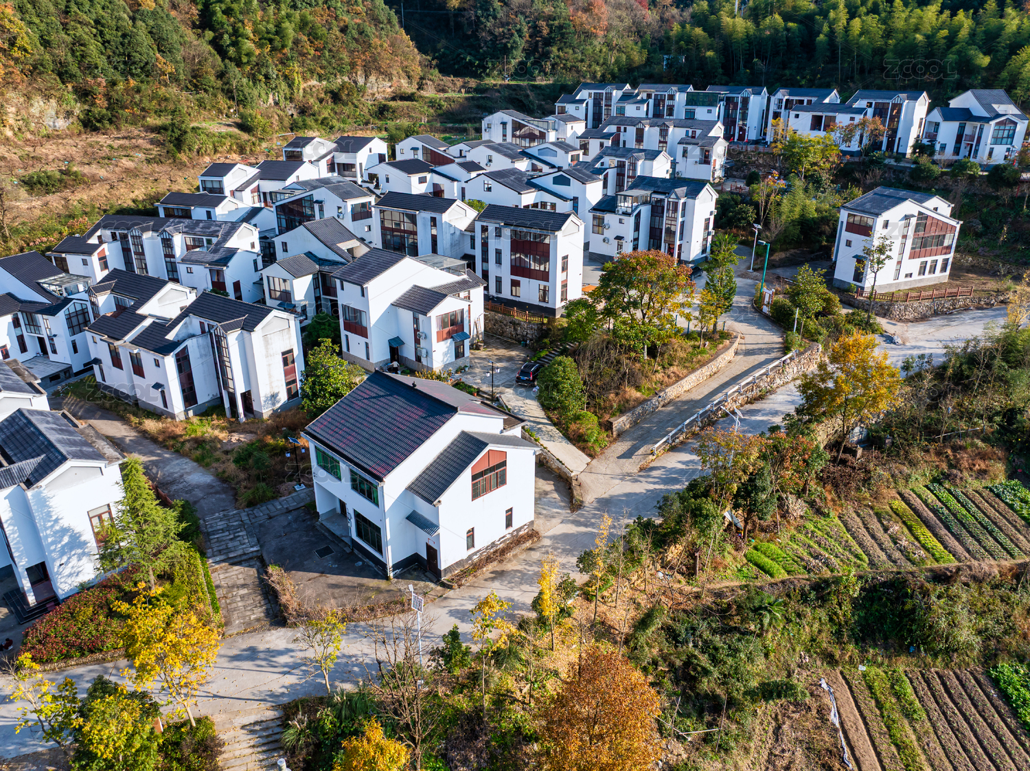 浙江省民宿集聚村浦江中余坪上村风光航拍
