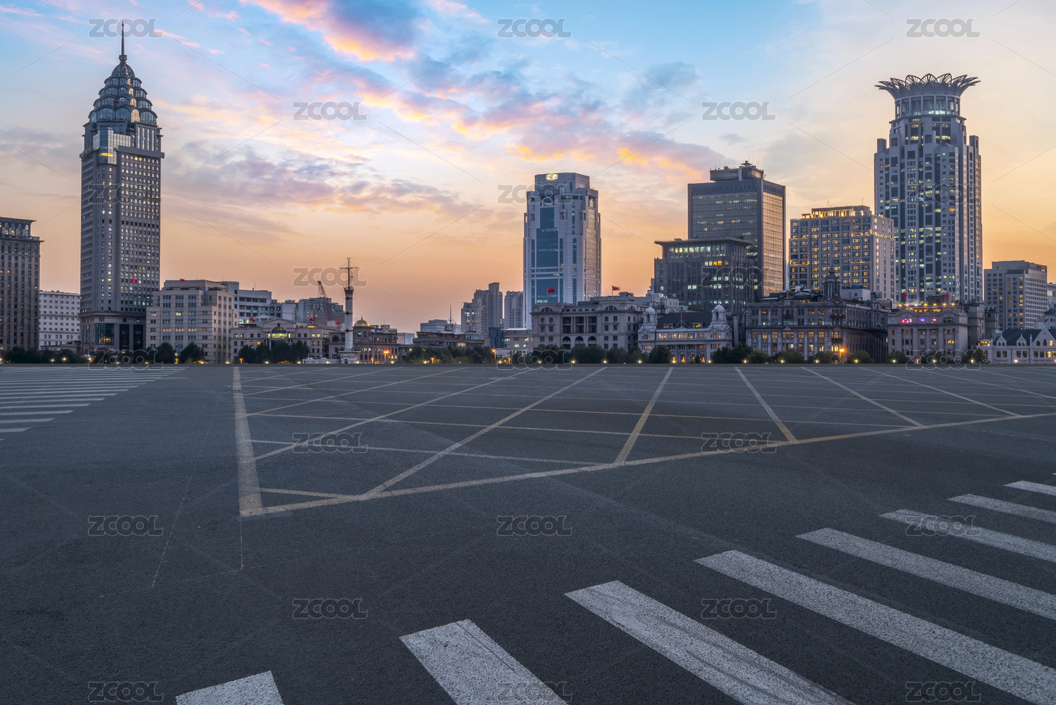 城市道路地面和建筑景观天际线
