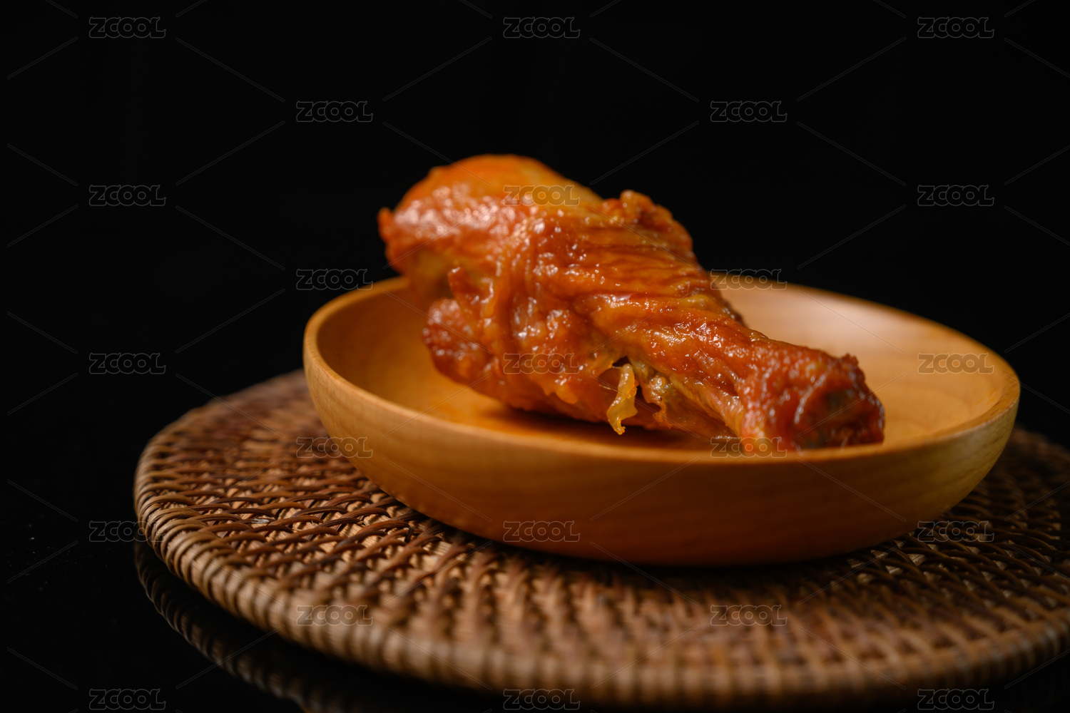 桌面上的盘子里的美味可口的奥尔良鸡腿