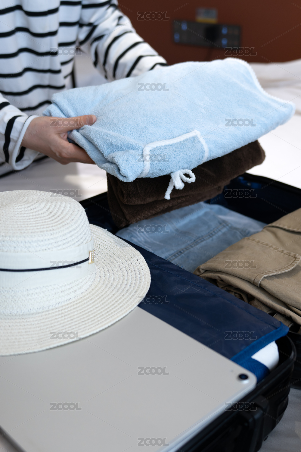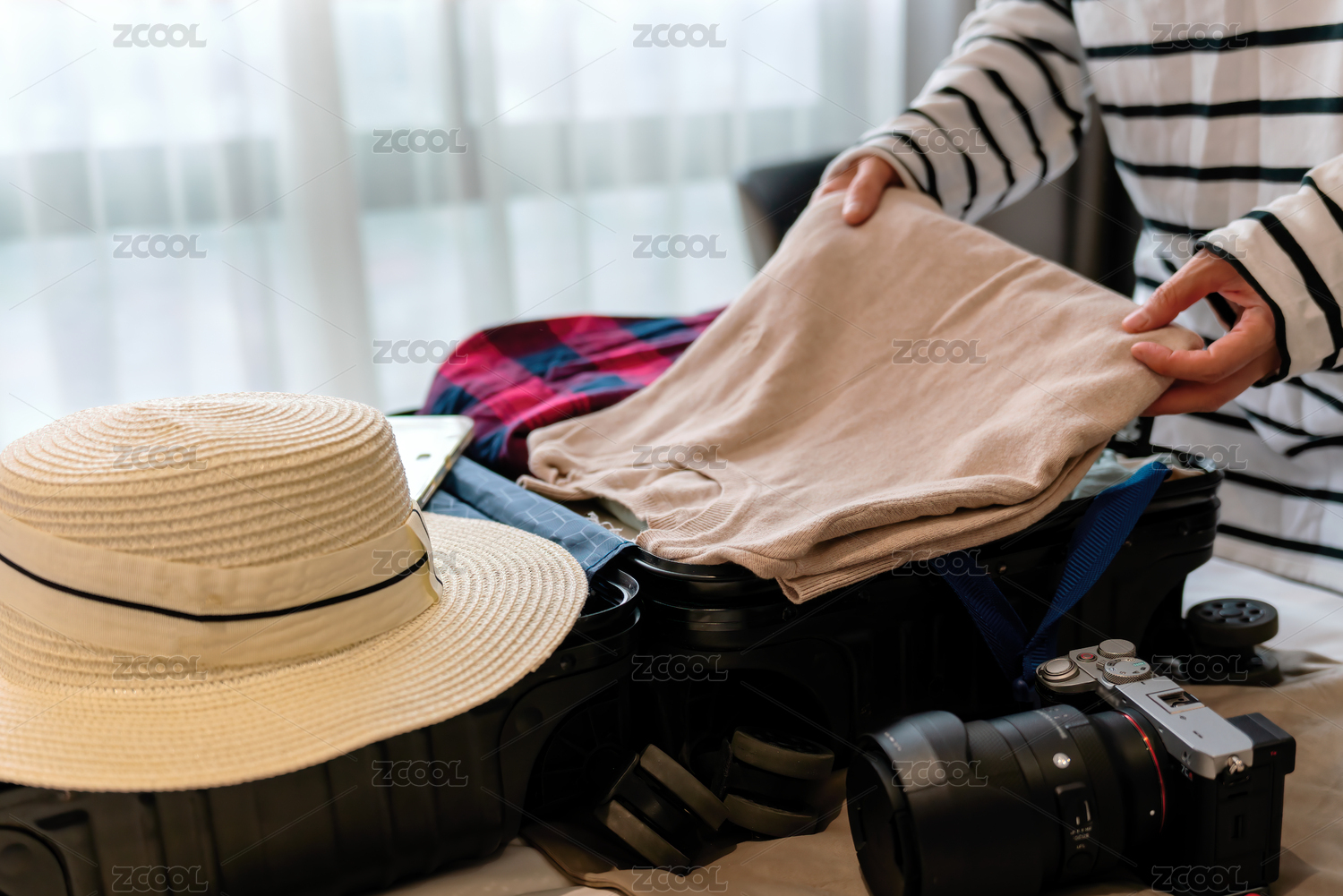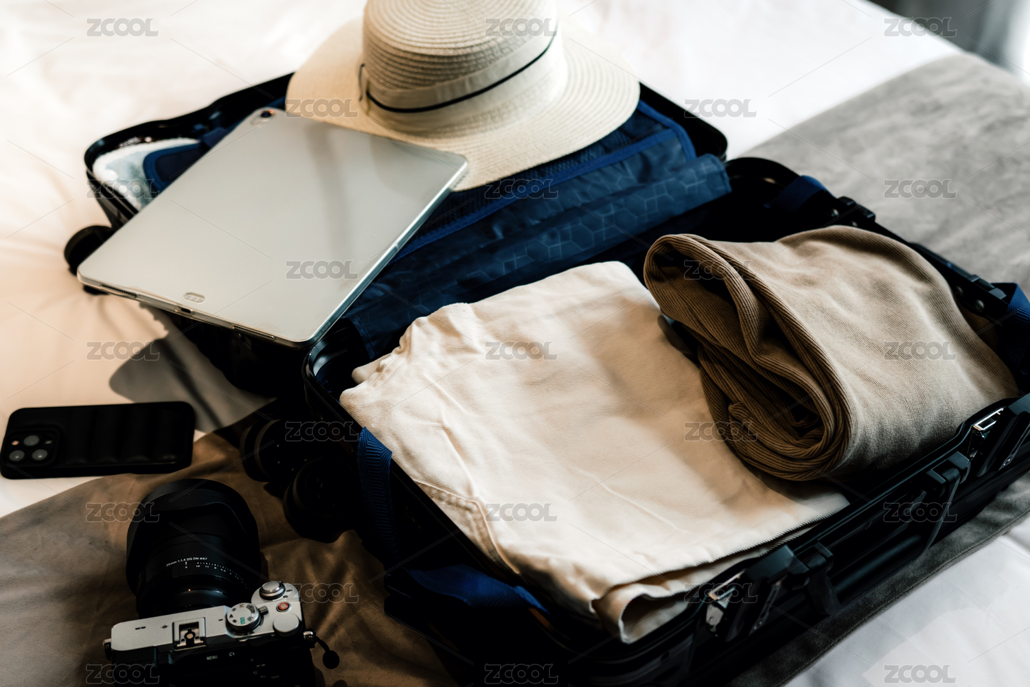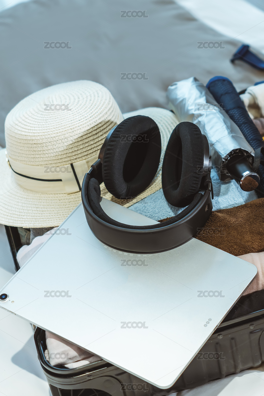 手提箱,打包,衣服,配饰,耳机,笔记本电脑,准备,组织,帽子,纺织品