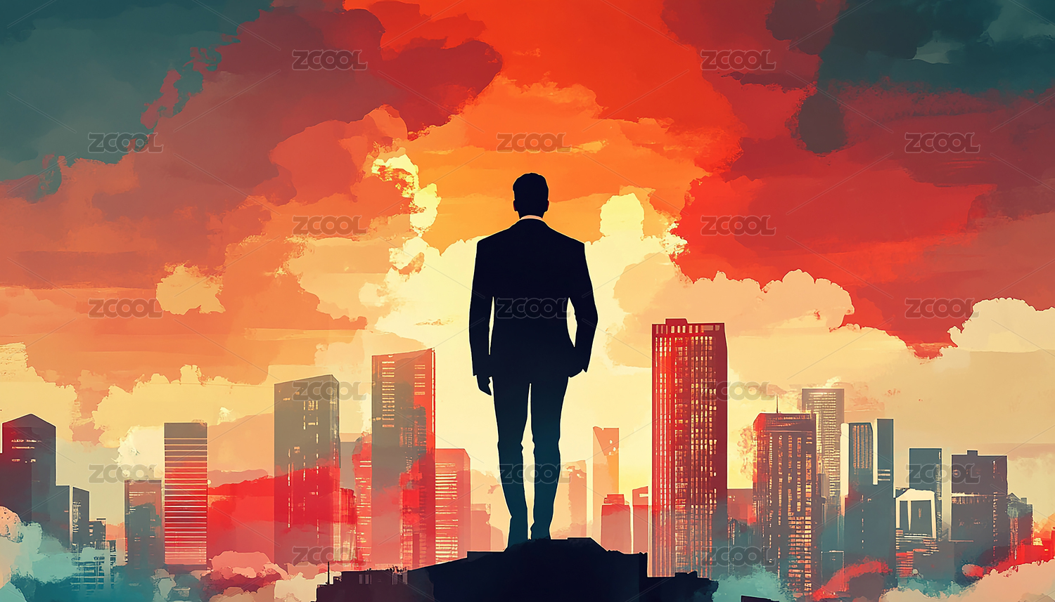商人背影与城市天际线主题