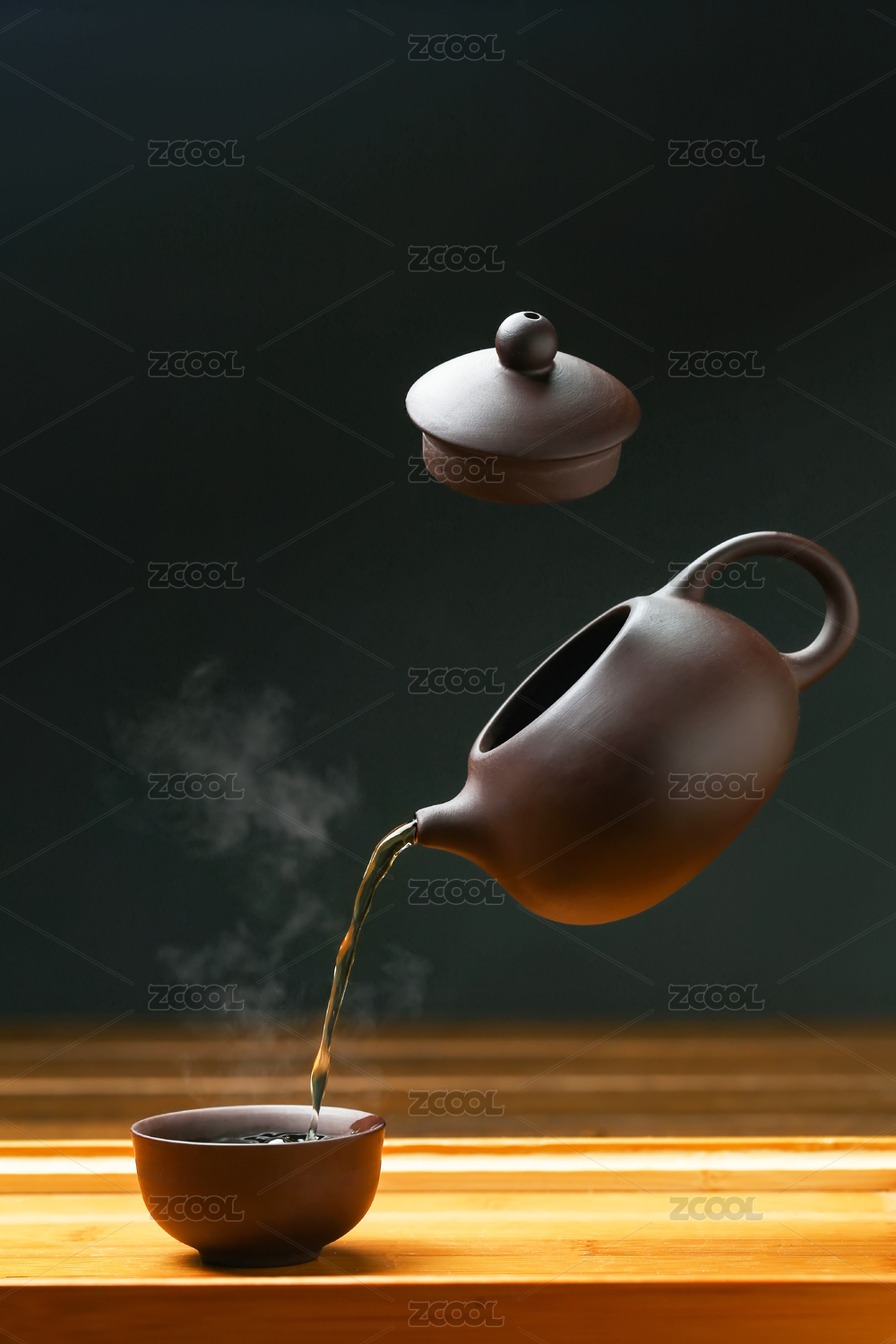 紫砂壶倒茶悬浮创意拍摄
