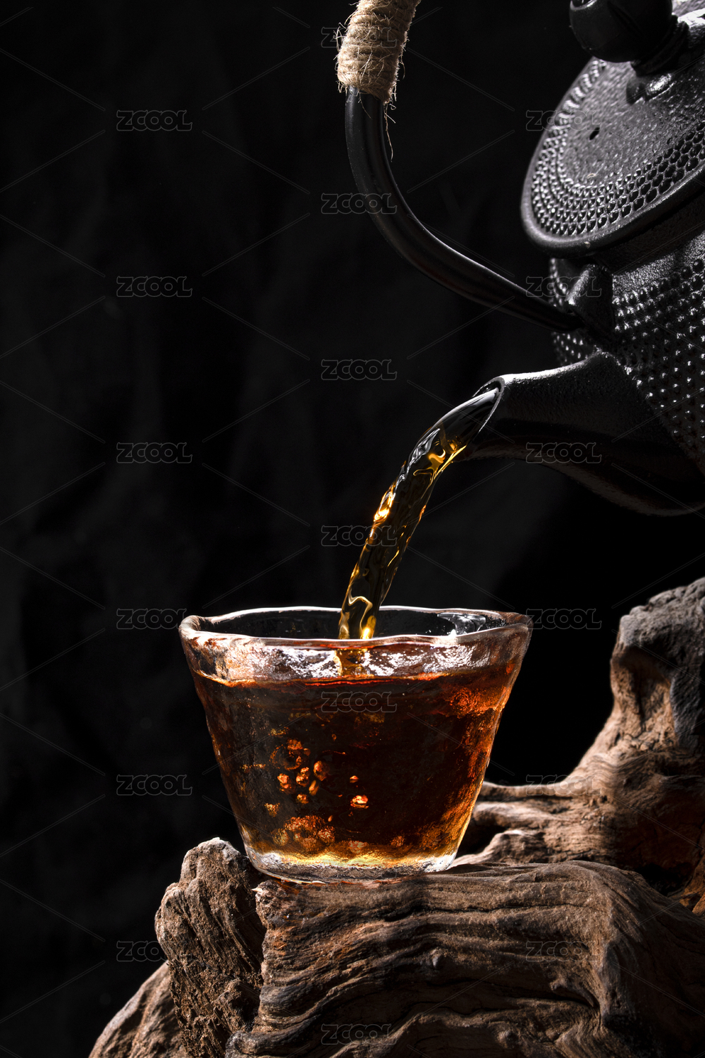 茶壶倾倒热茶入杯