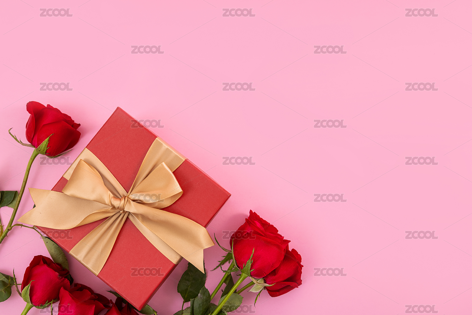 七夕节日情人节粉色玫瑰和礼物盒浪漫背景图