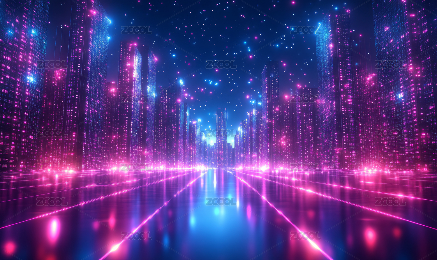 紫色和蓝色光线组成的未来科技感道路