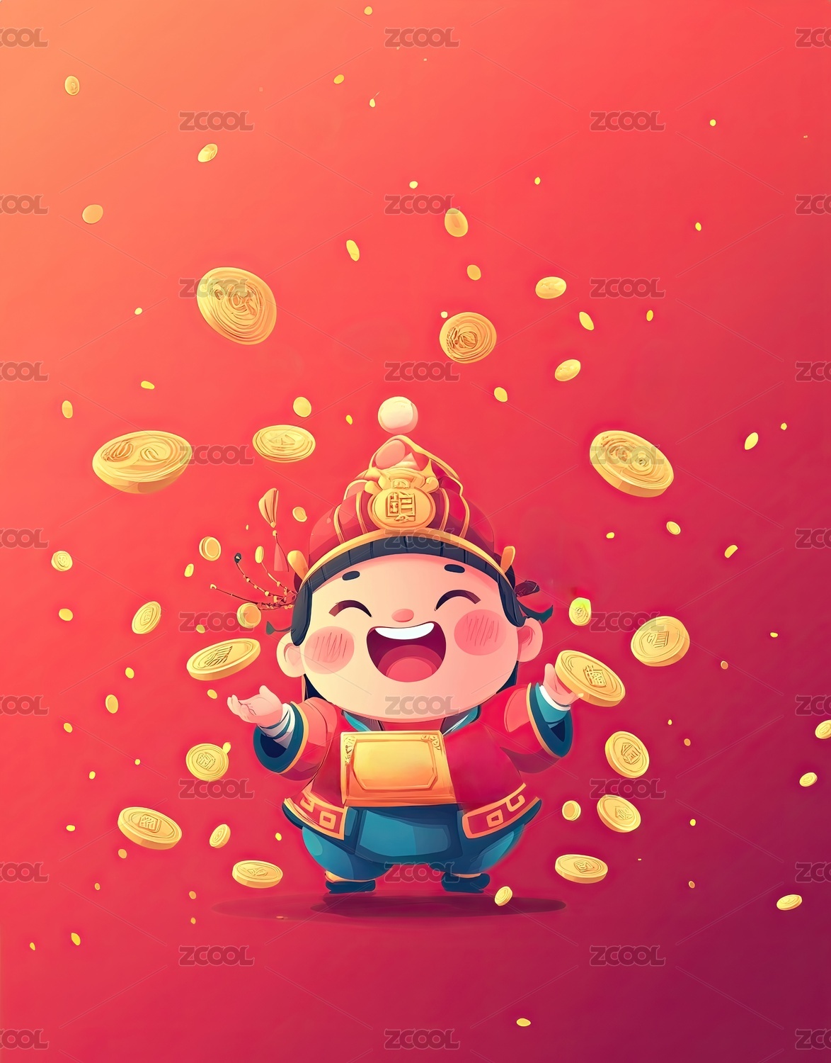 财神卡通与金钱祝福寓意