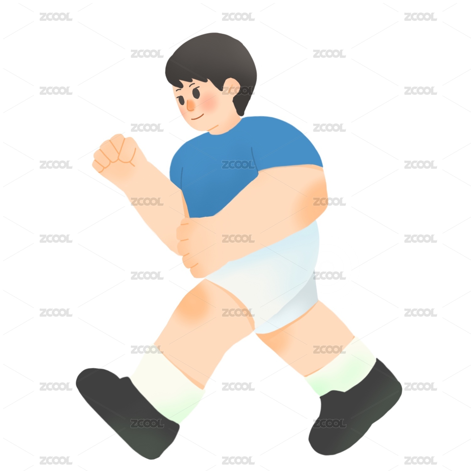 清新扁平插画一个青年男孩快速跑步的正面