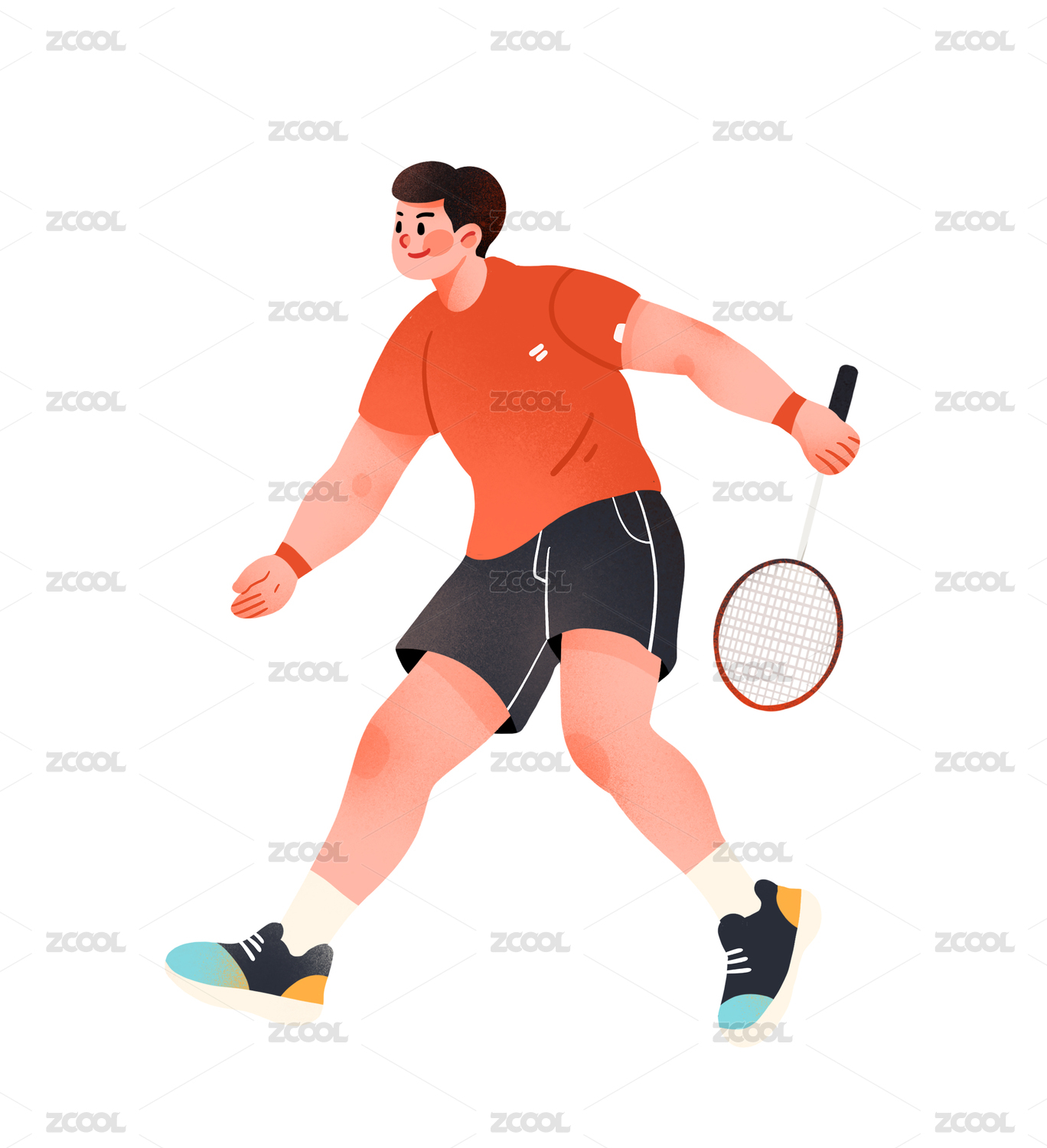 扁平运动打羽毛球人物插画
