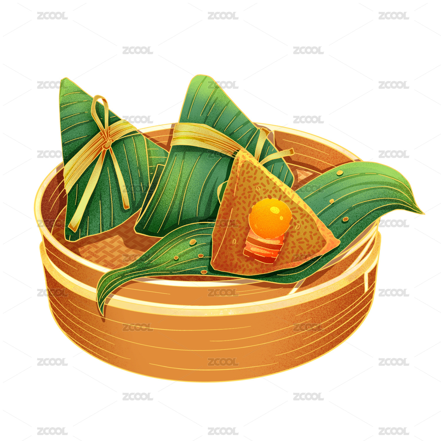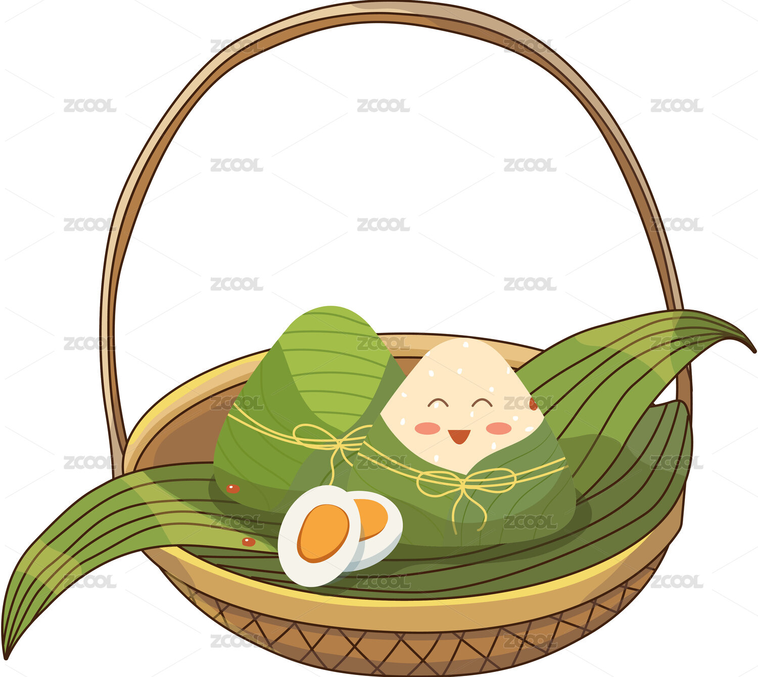 端午节装在篮子里的粽子和咸鸭蛋插画