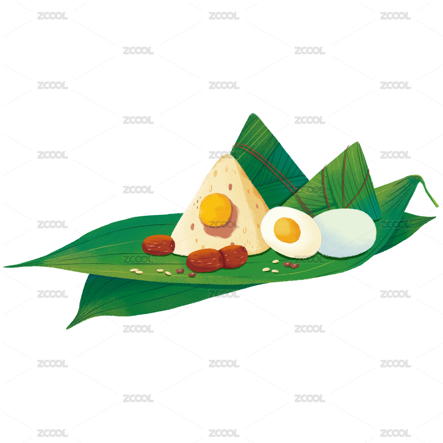 绿色粽叶包裹的咸蛋粽子矢量插画