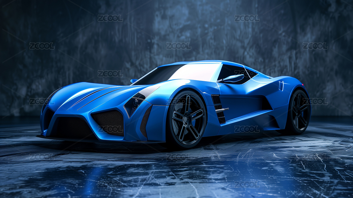蓝色全息半透明结构科技跑车