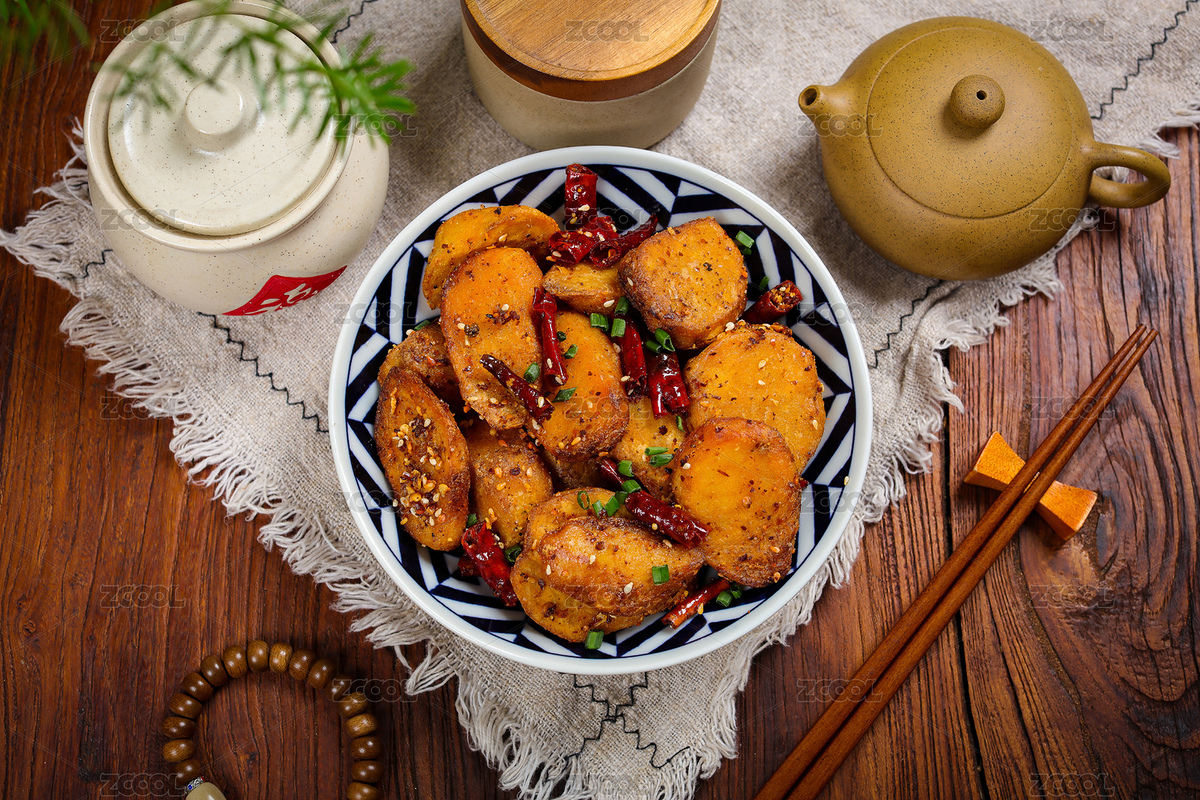 传统美味家常菜麻辣油炸土豆炸洋芋