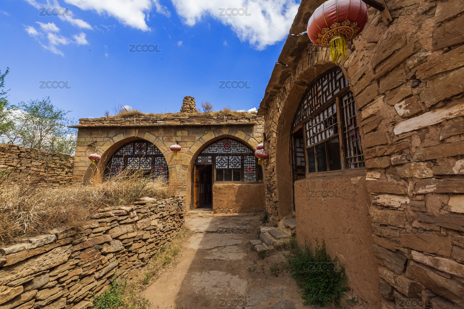 宁夏镇北堡西部影视城蓝天白云黄土风光