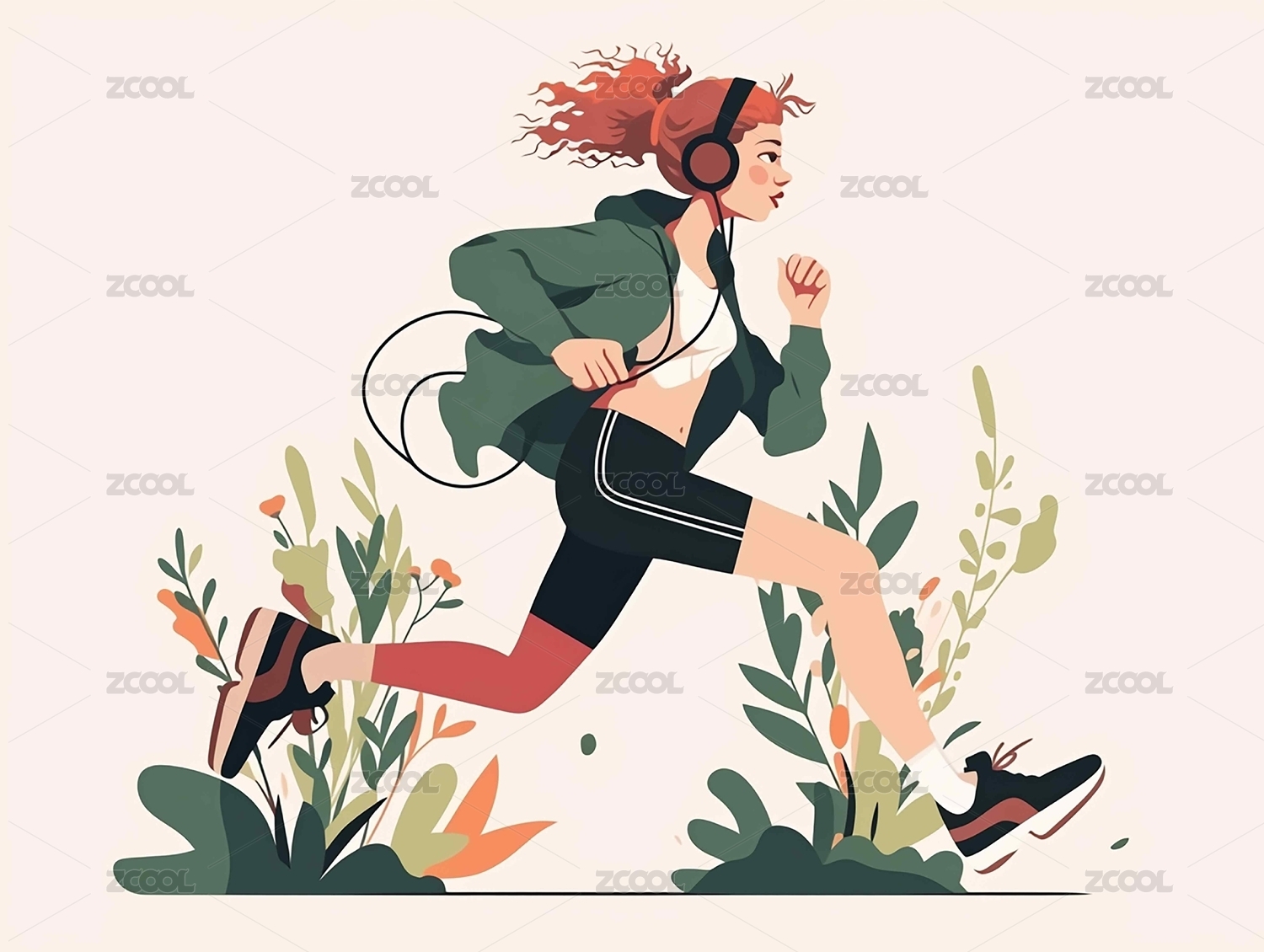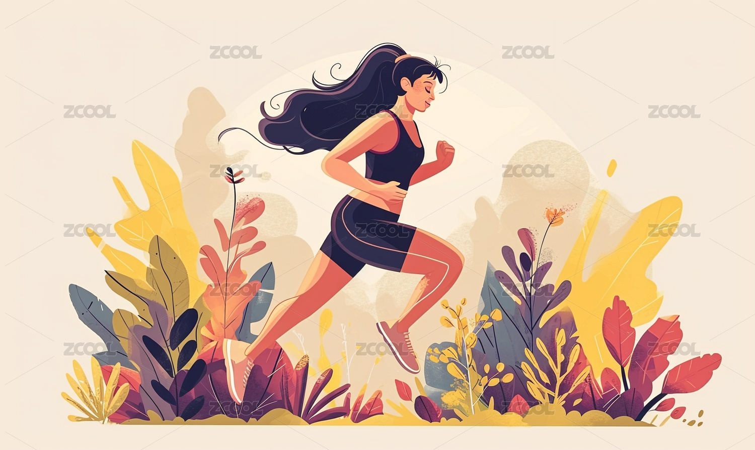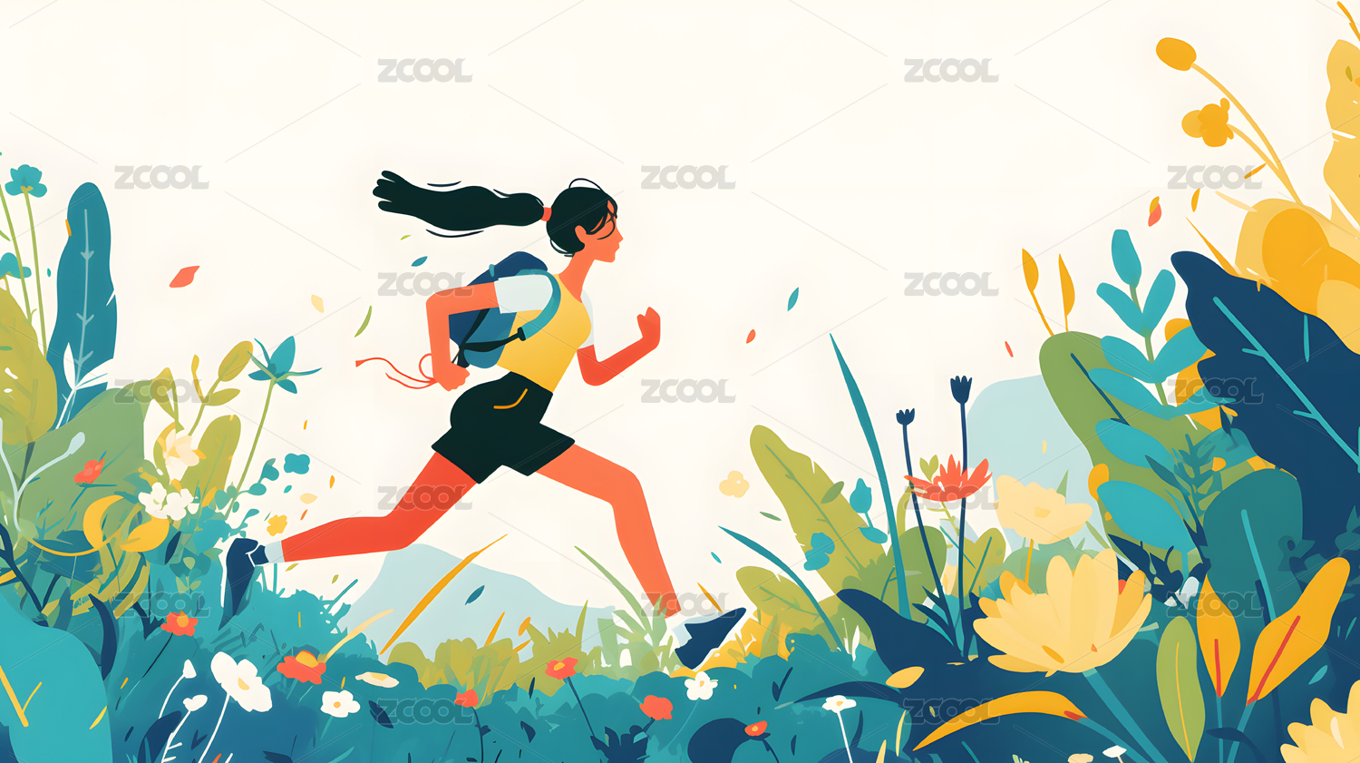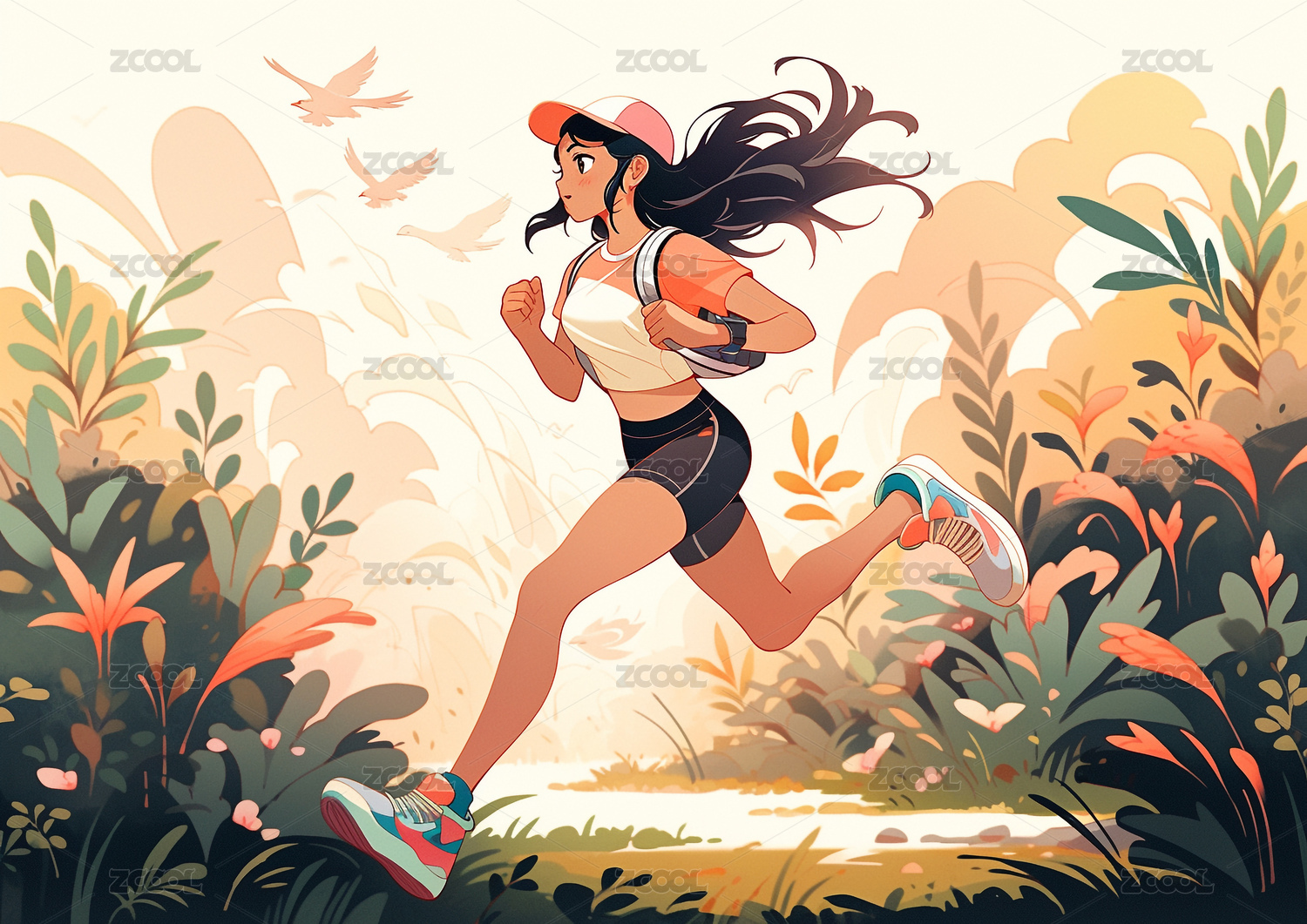夏天女孩跑步运动减肥插画户外锻炼健身海报
