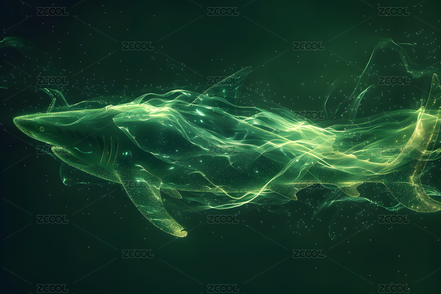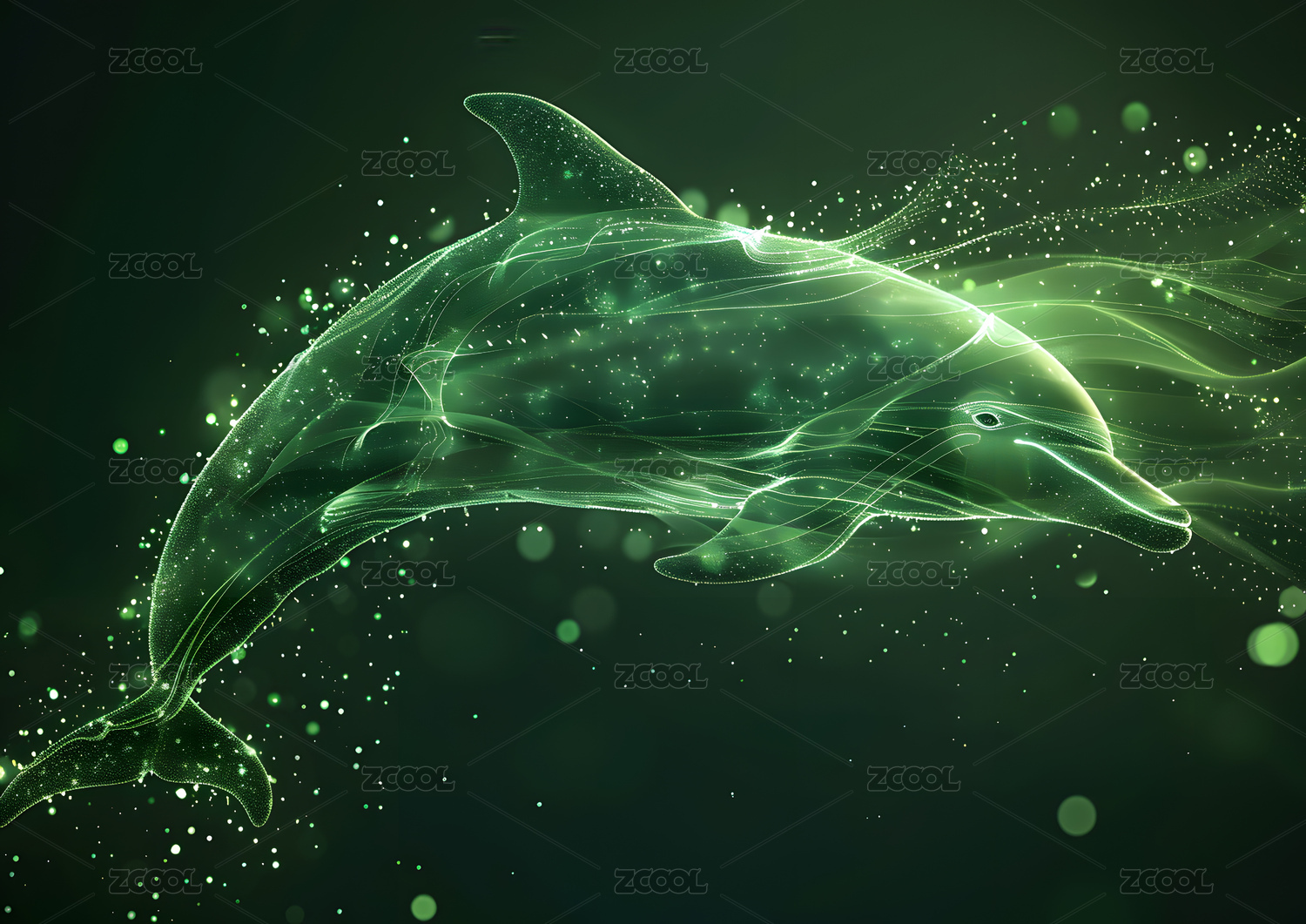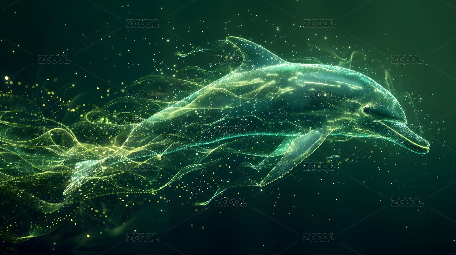 元宇宙数字成像一只散发绿色荧光的海豚背景