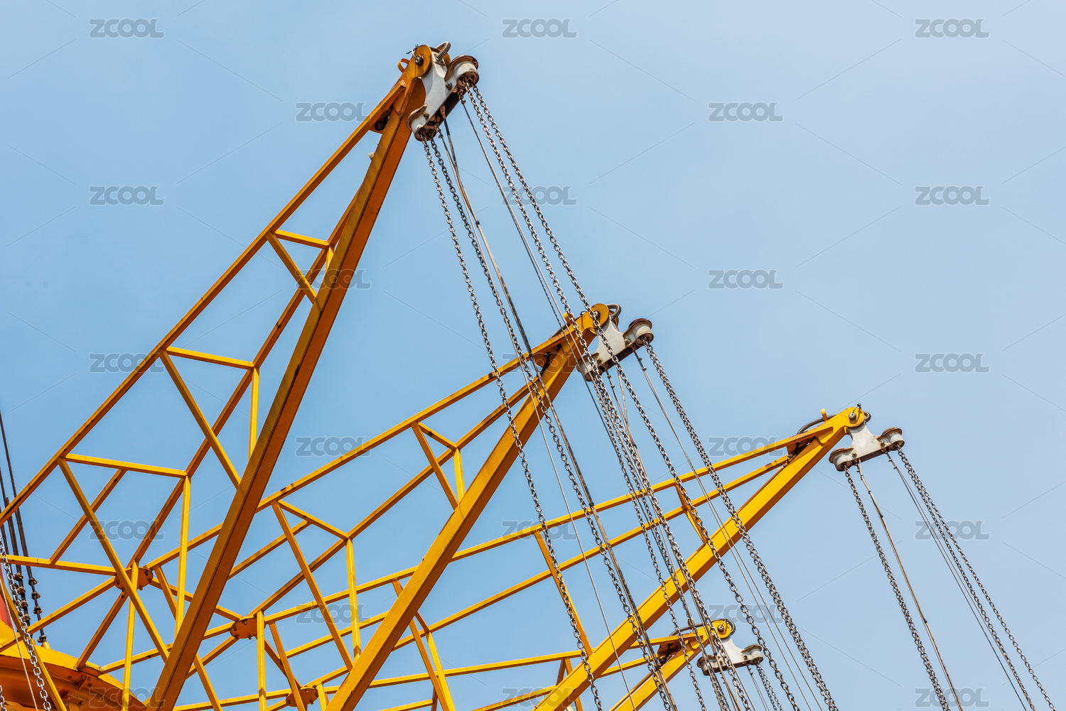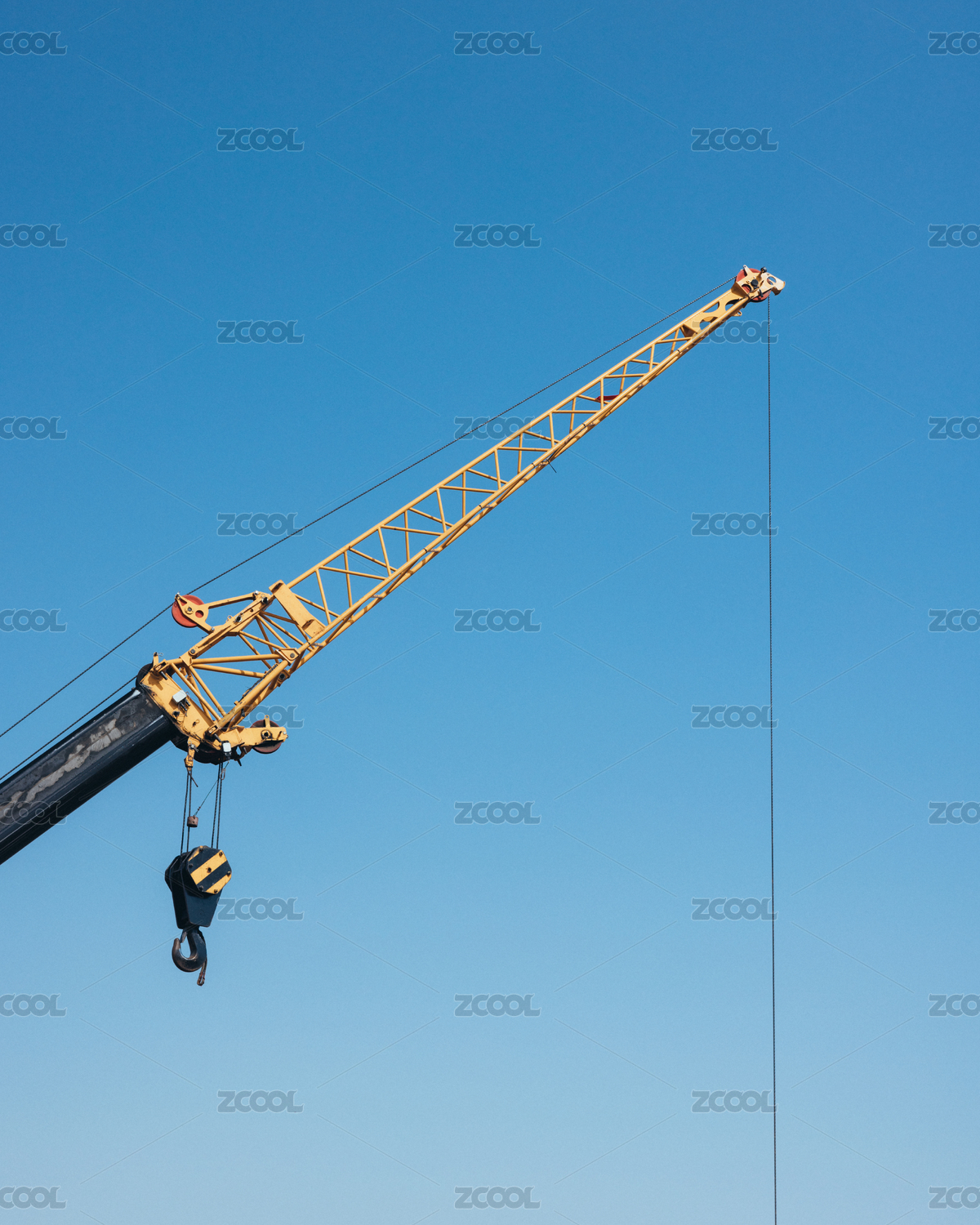 城市建筑群楼建设中的起重机挂臂、缆绳和挂