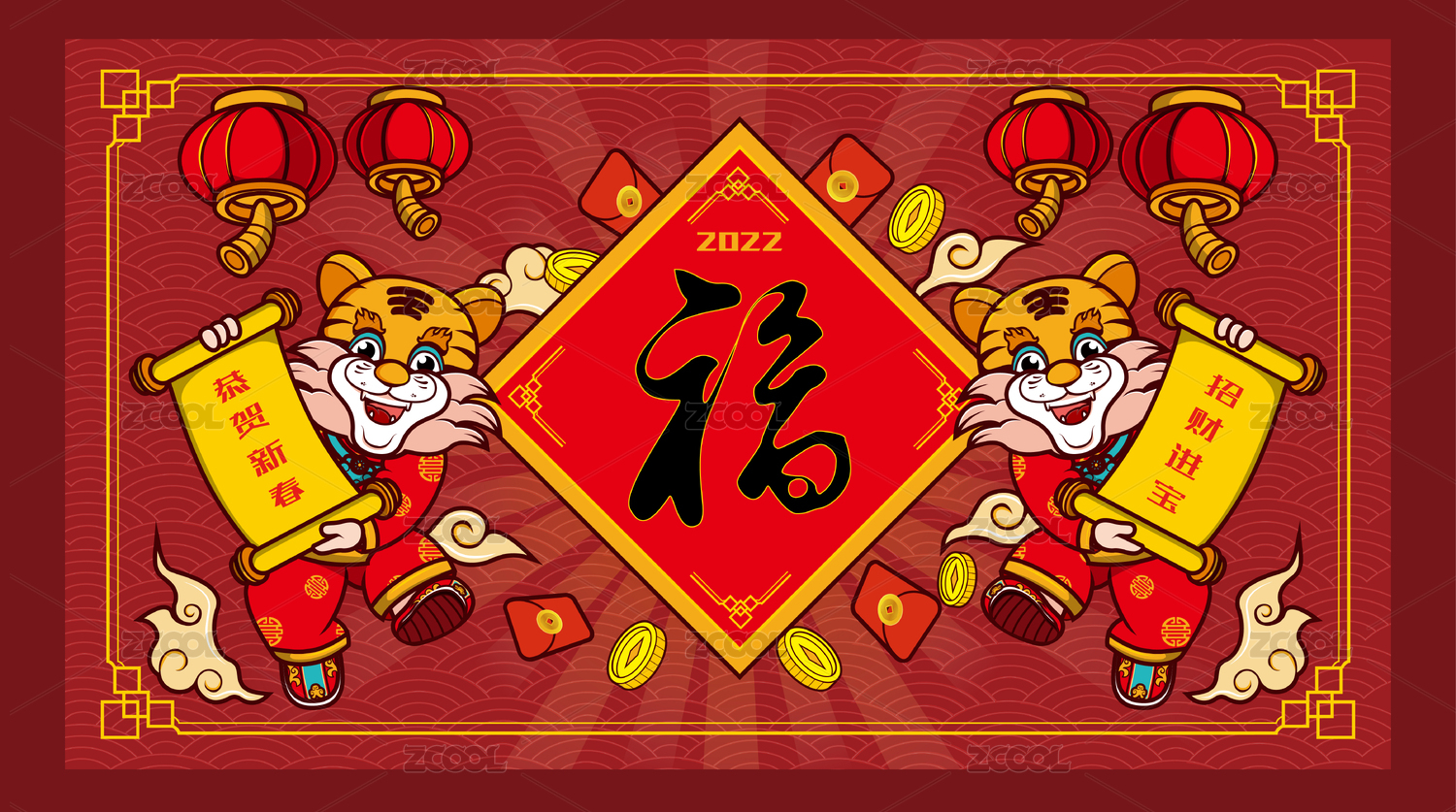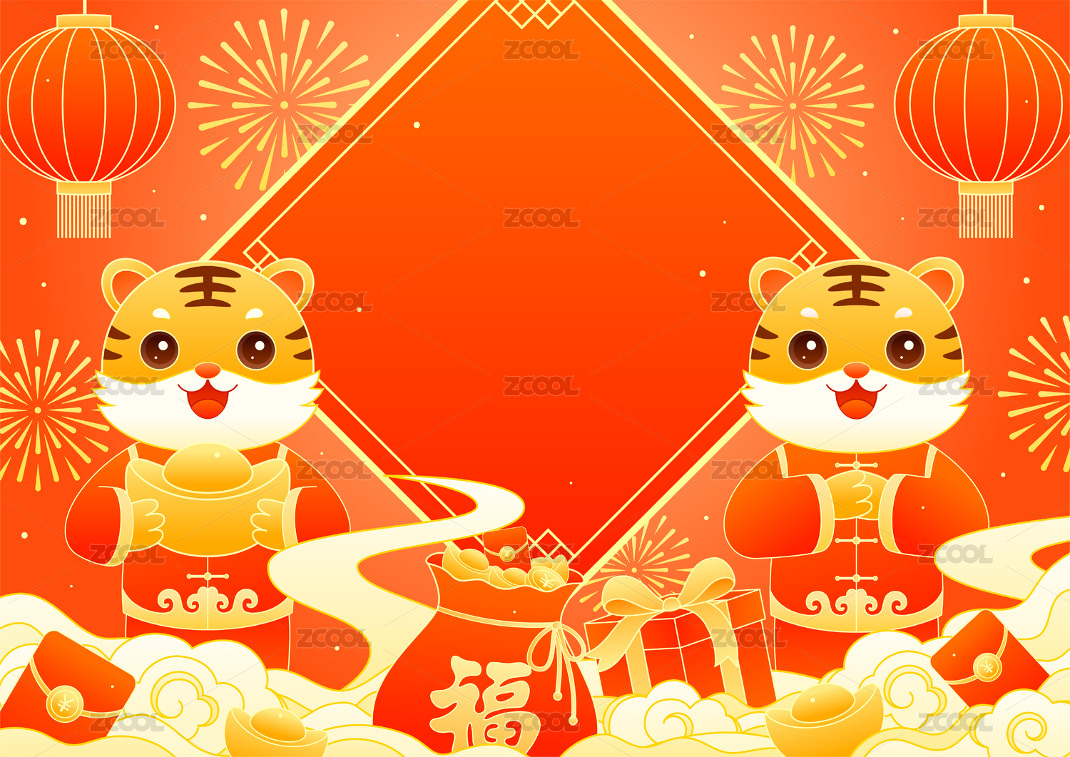 舞狮,醒狮,国潮,传统文化,老虎,虎年,新年,春节,新春,卡通