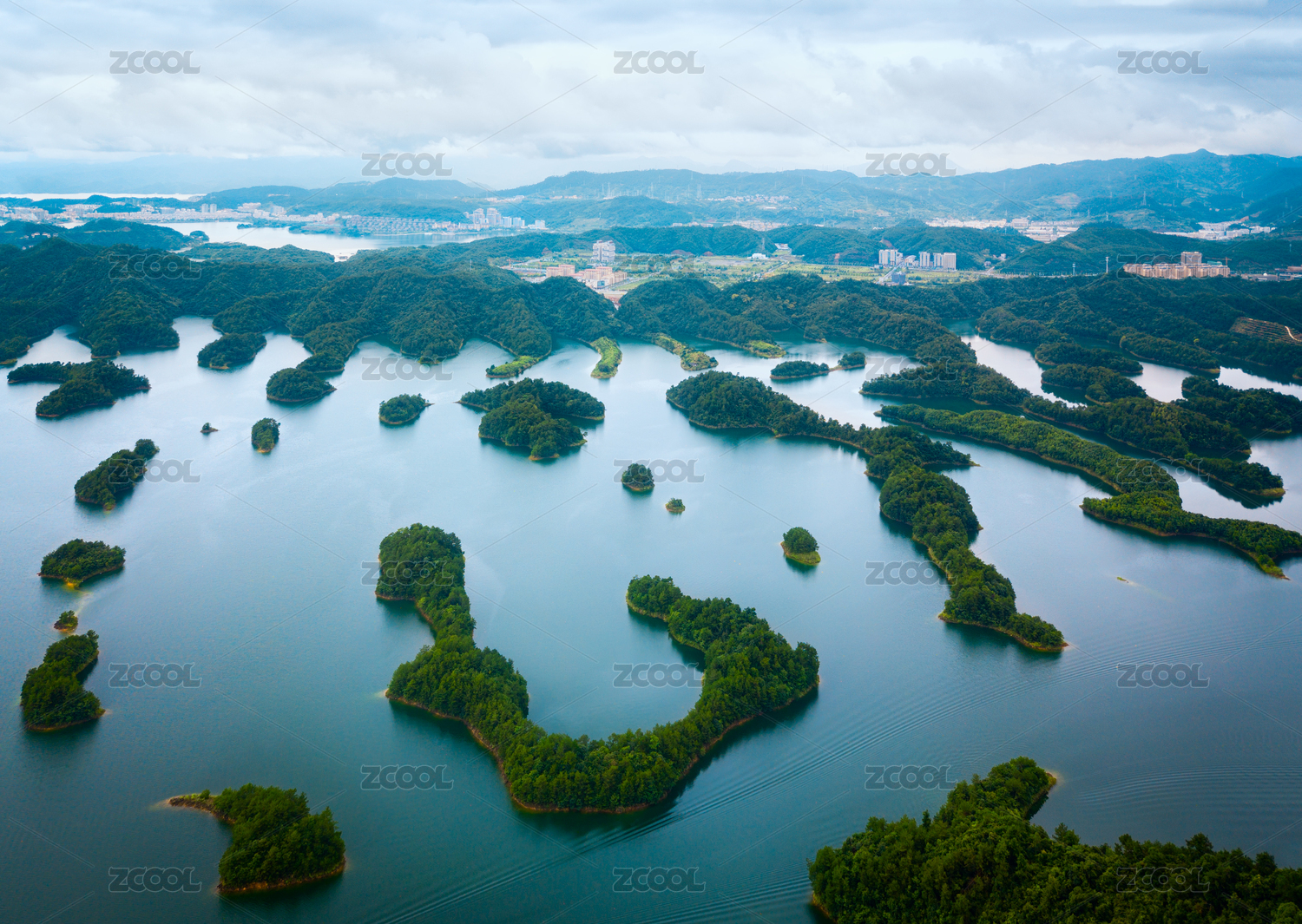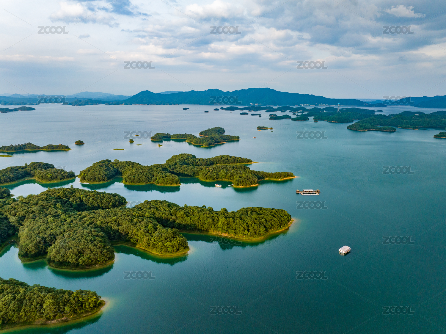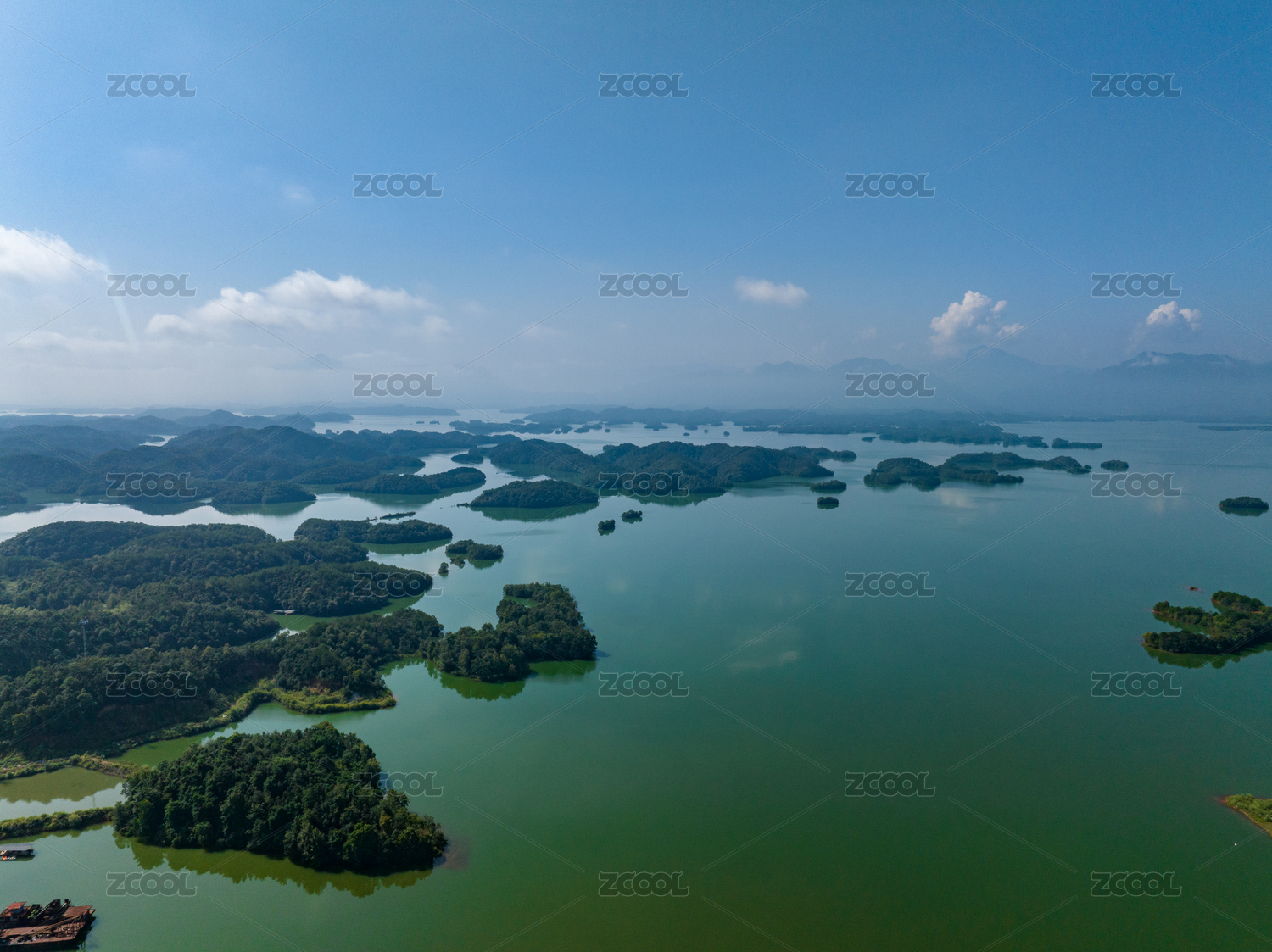浙江杭州淳安县千岛湖自然风光鸟瞰航拍