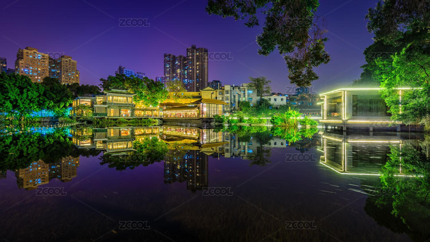 佛山千灯湖公园城市高楼建筑夜景灯光