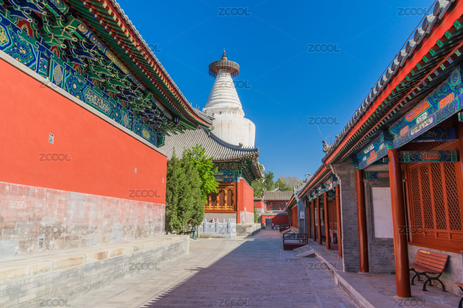 春季晴天北京妙应白塔寺古代建筑风光